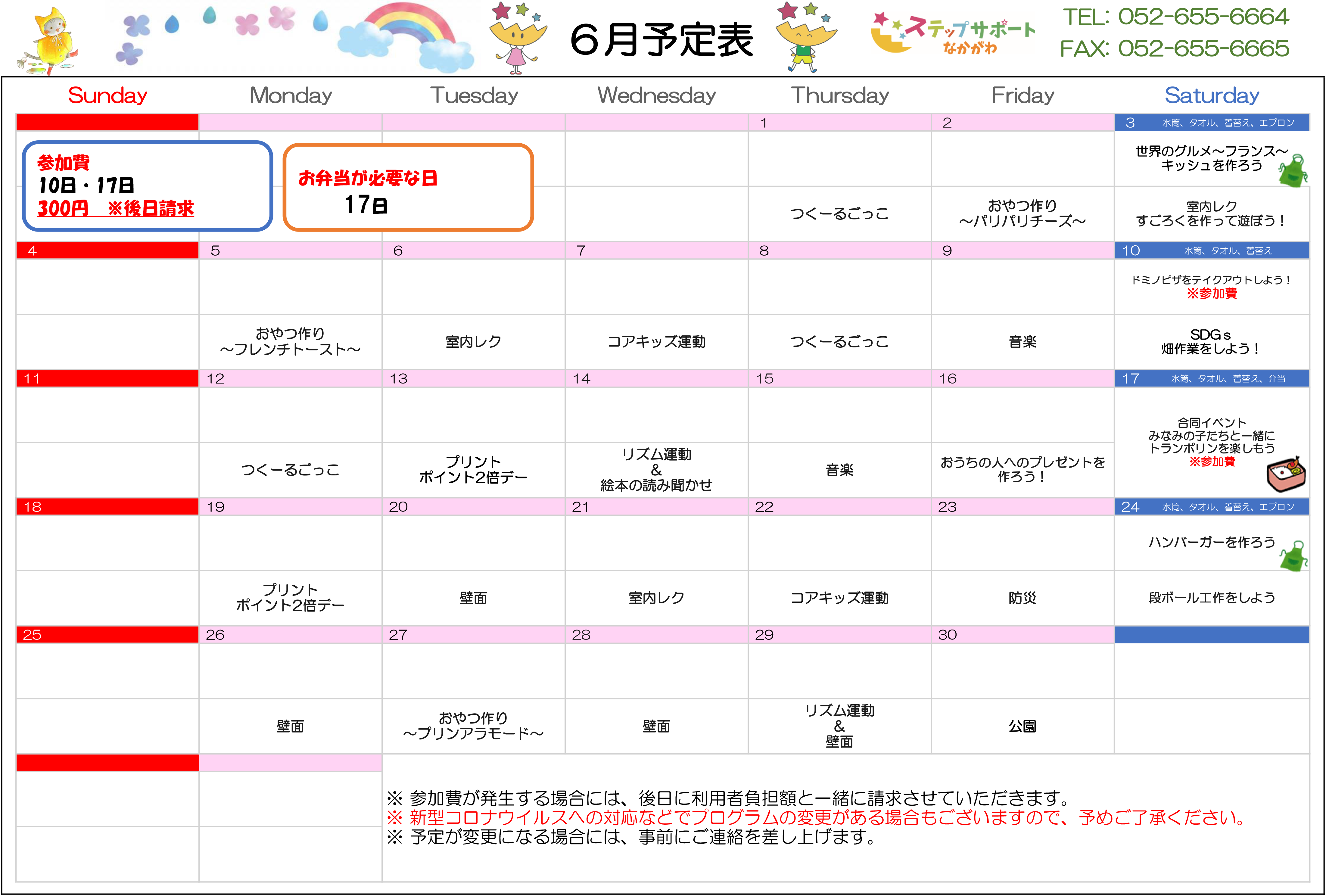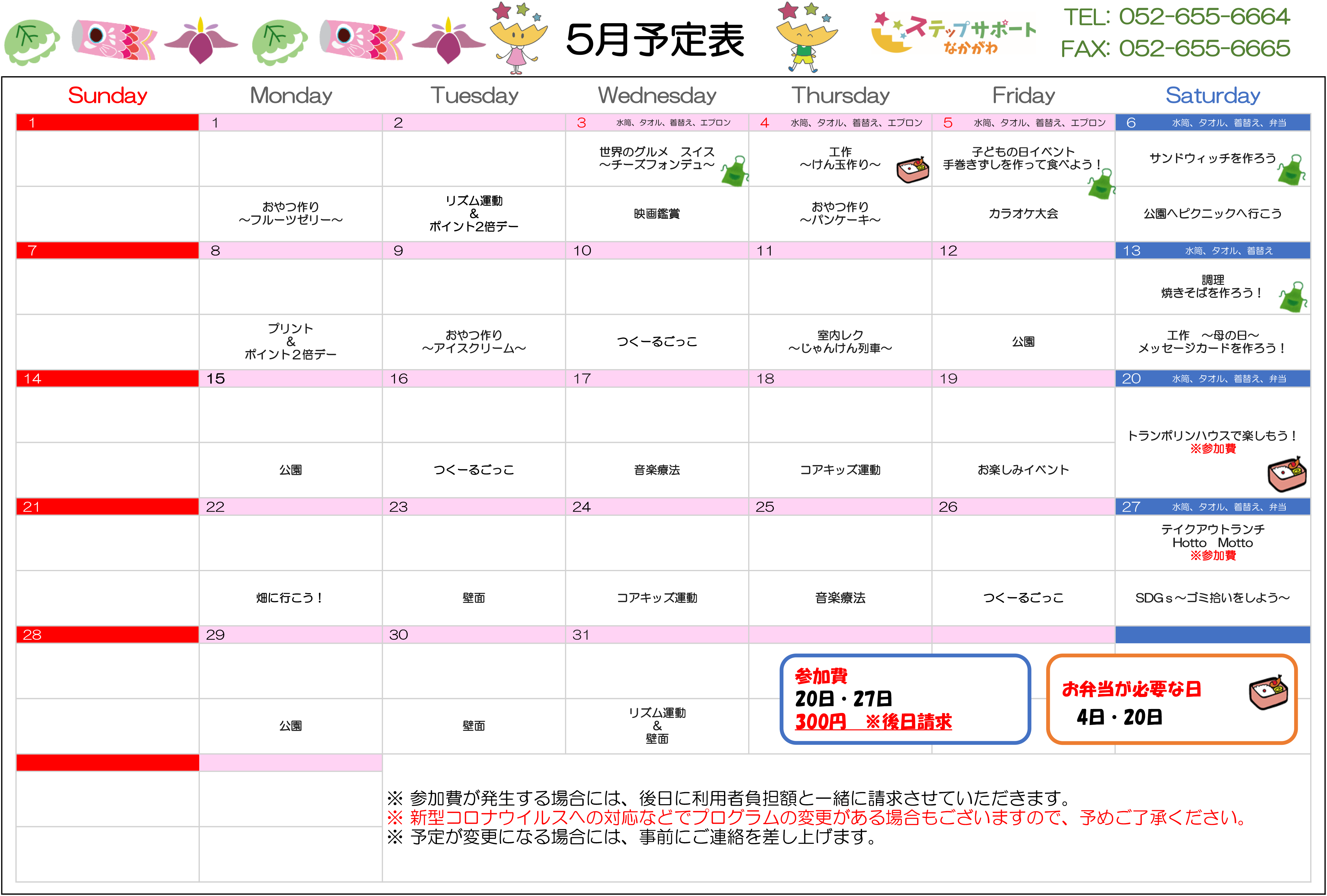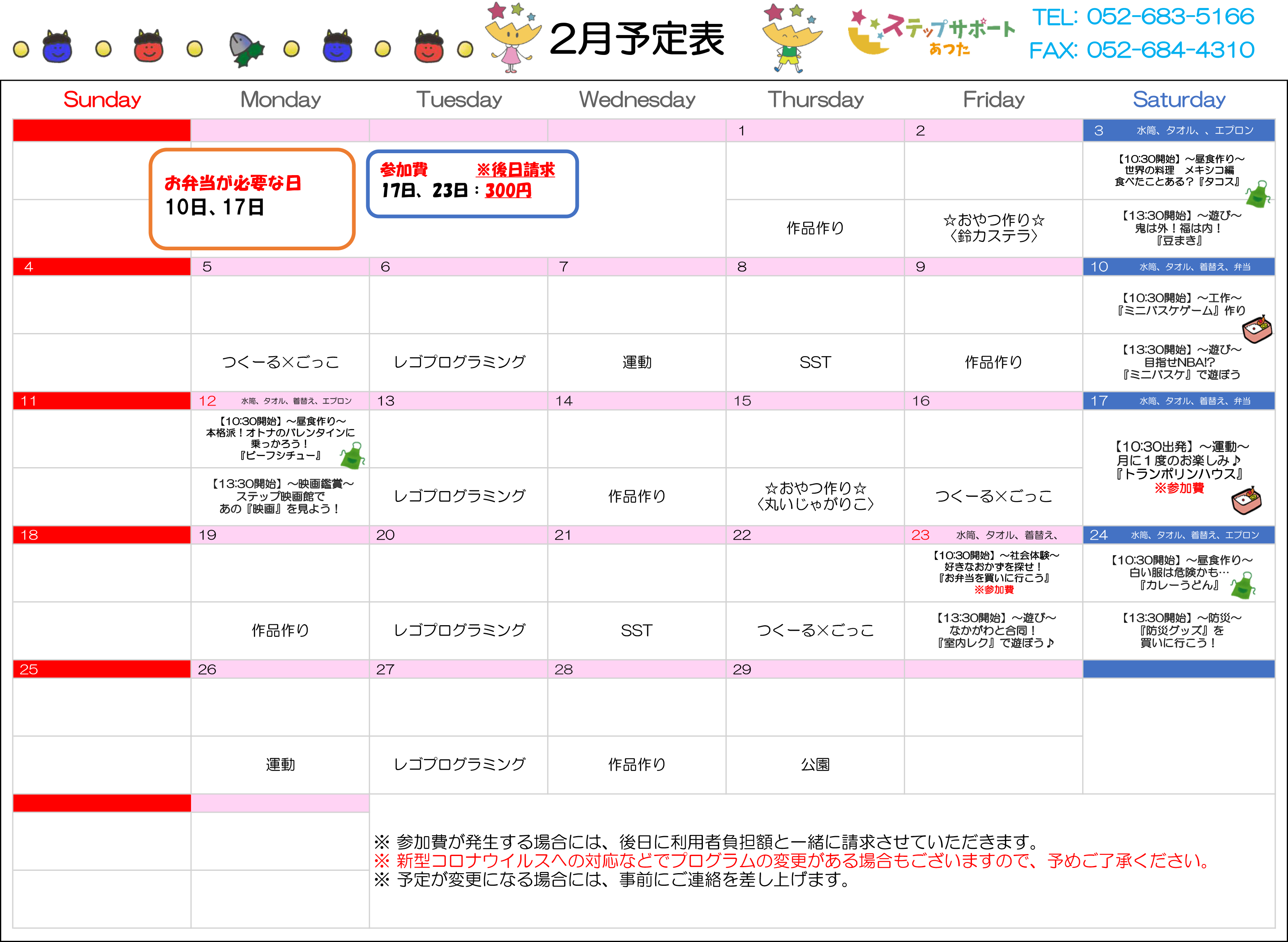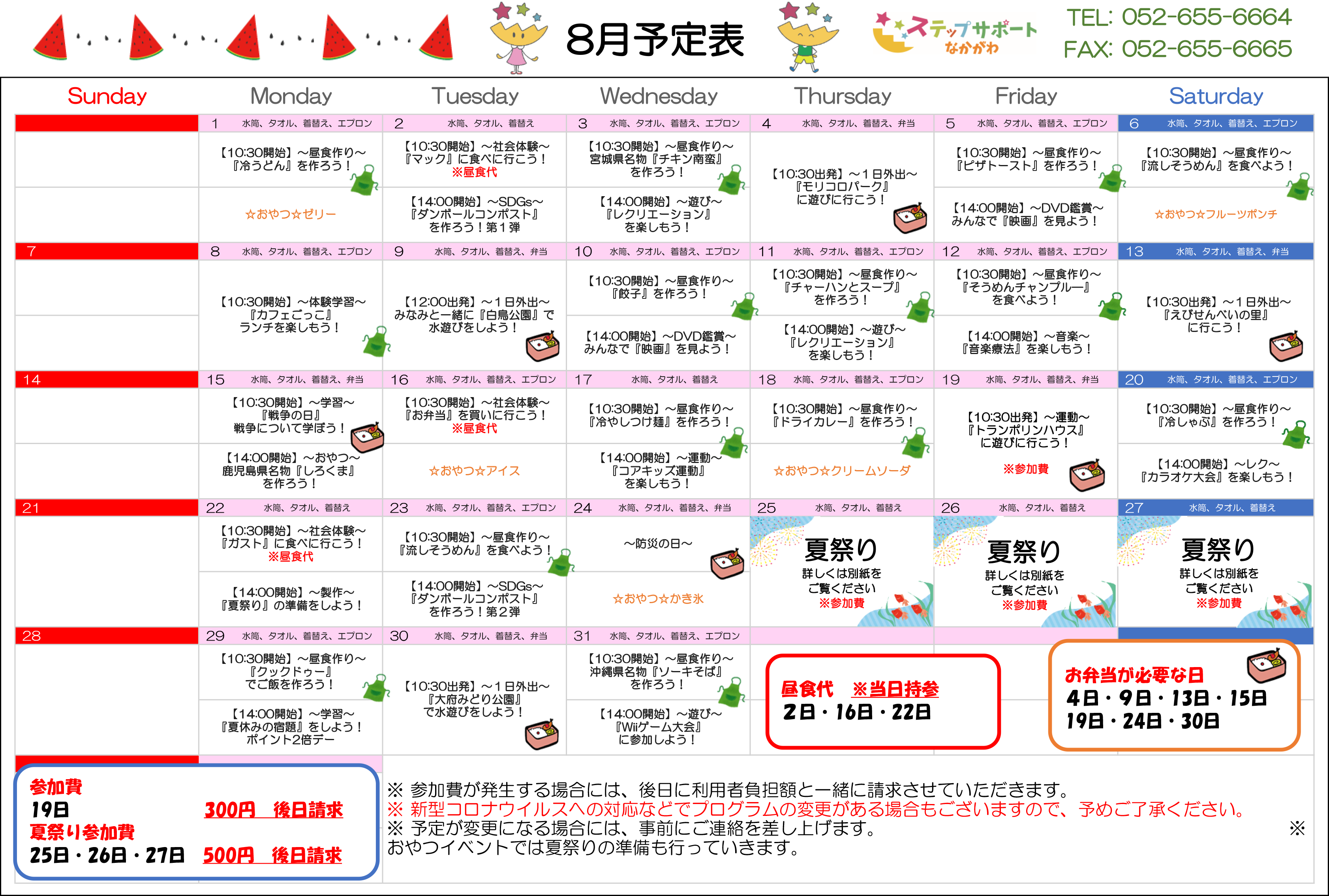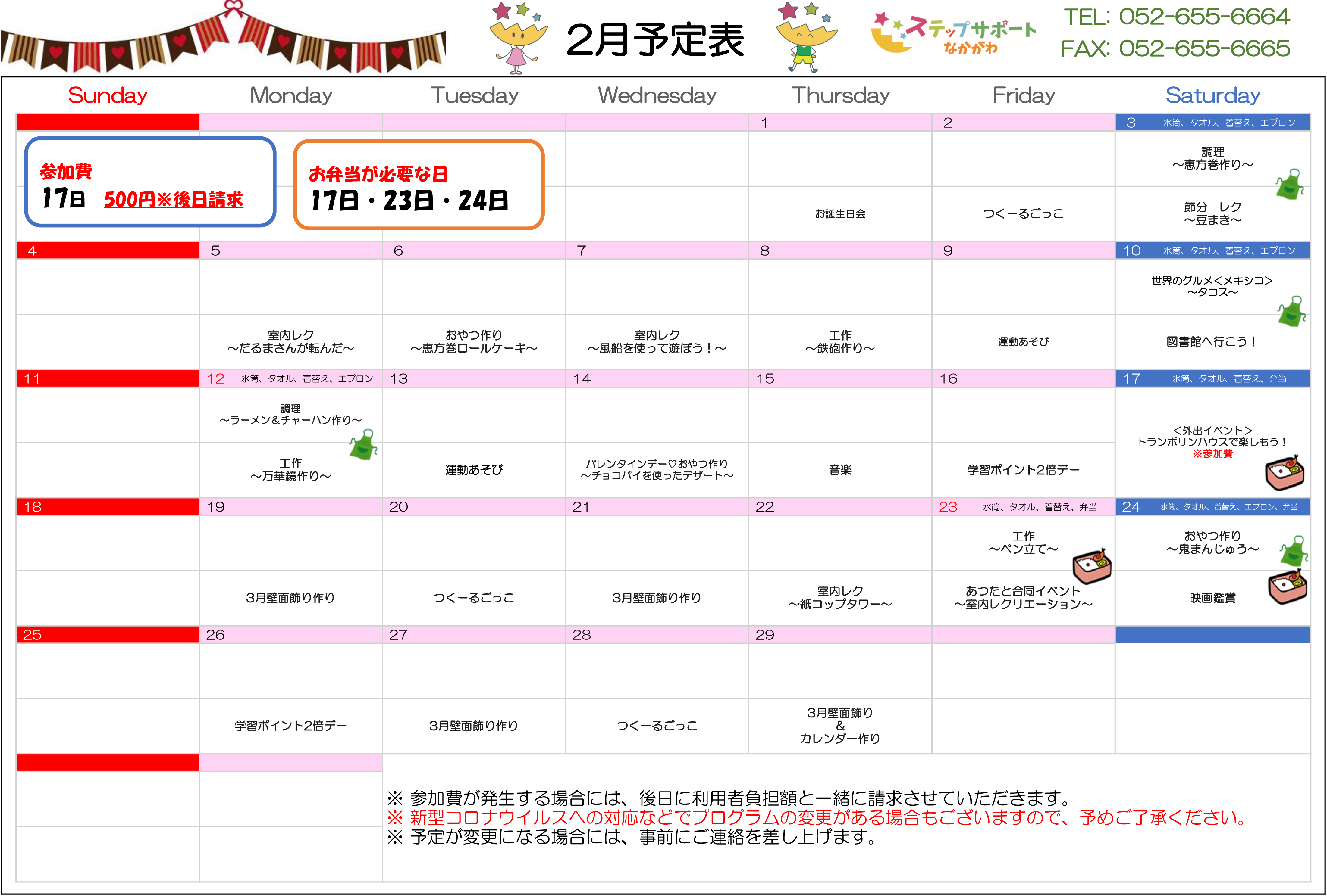 ステップグループの月間行事予定表