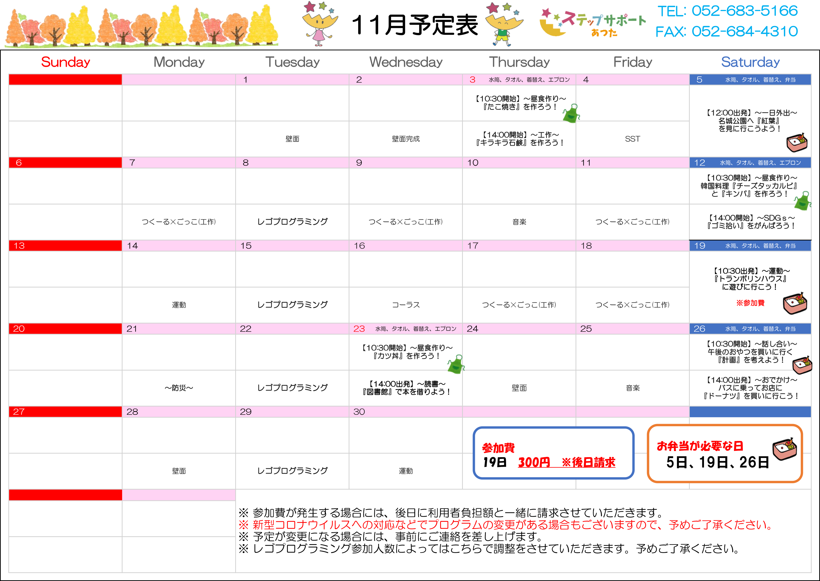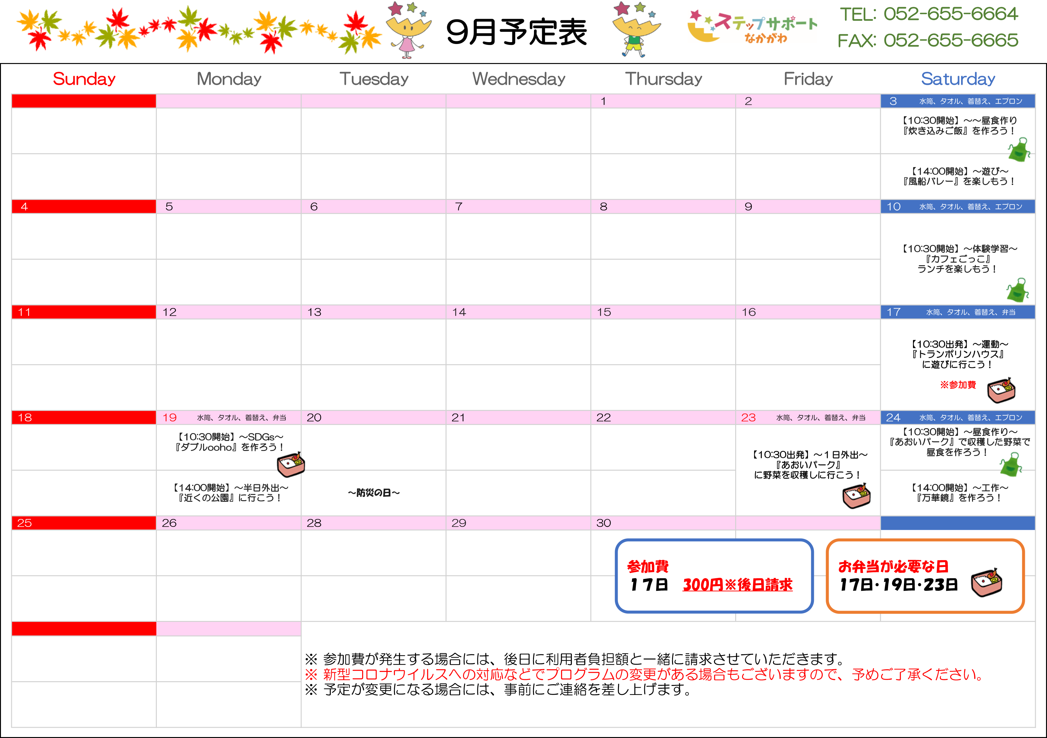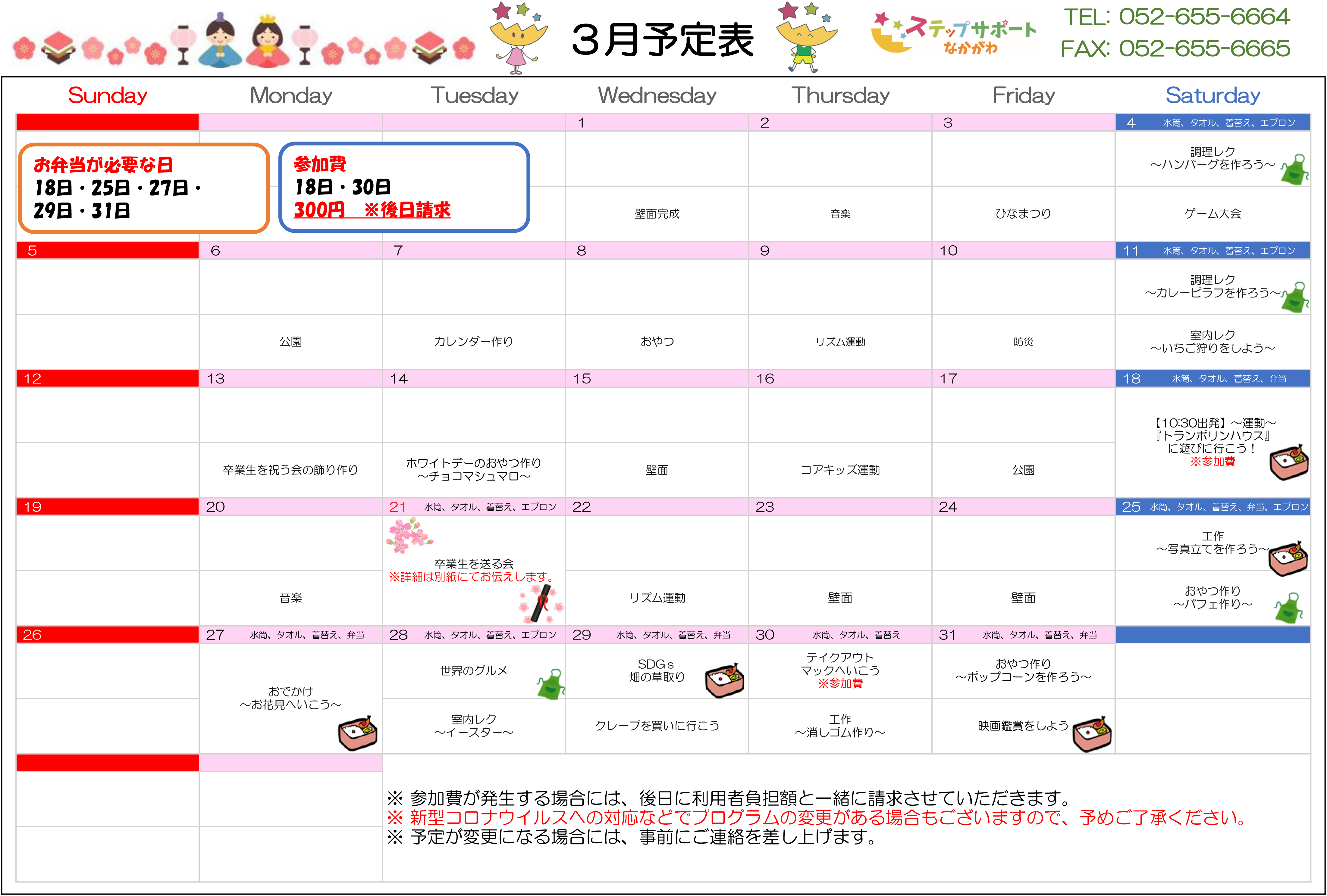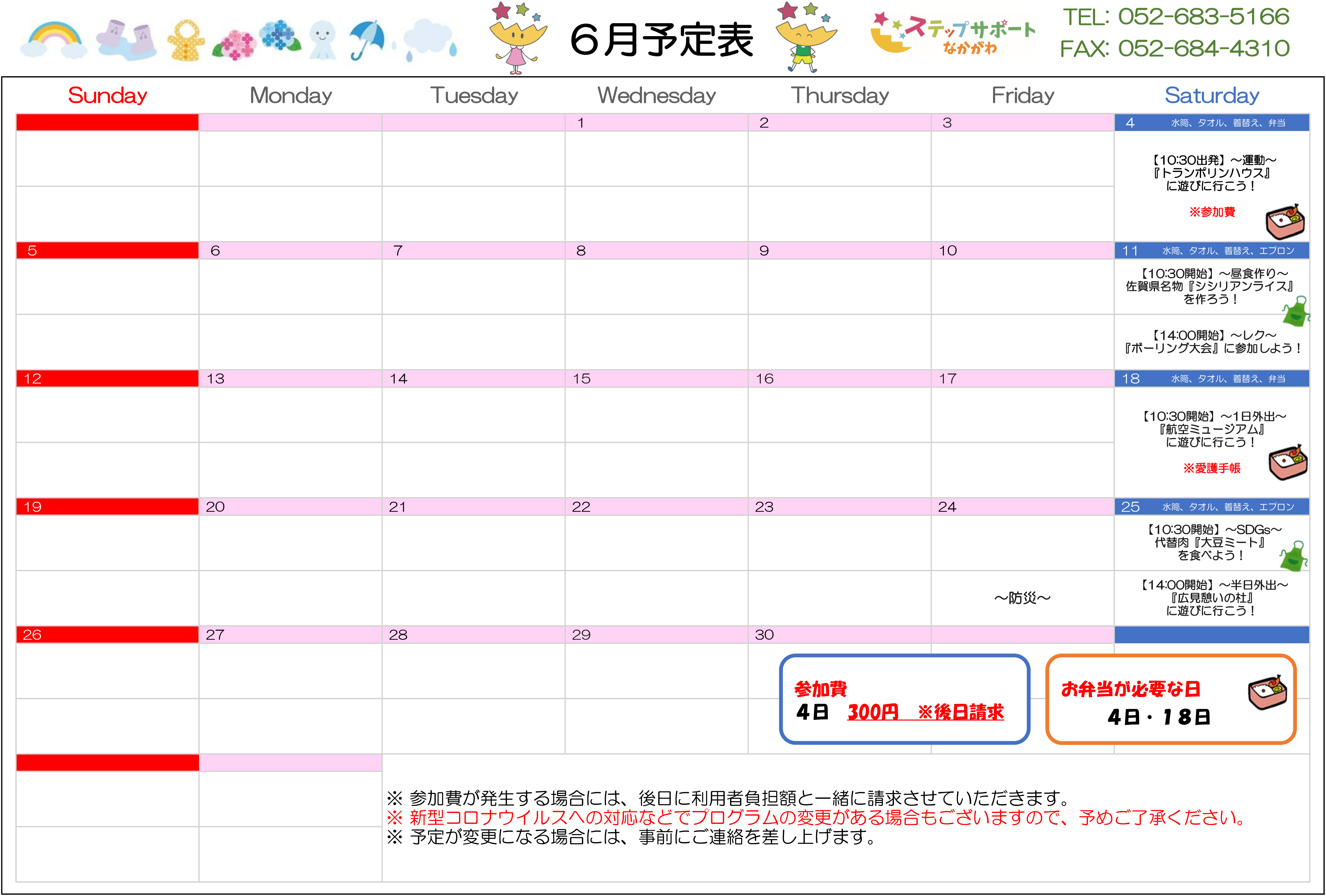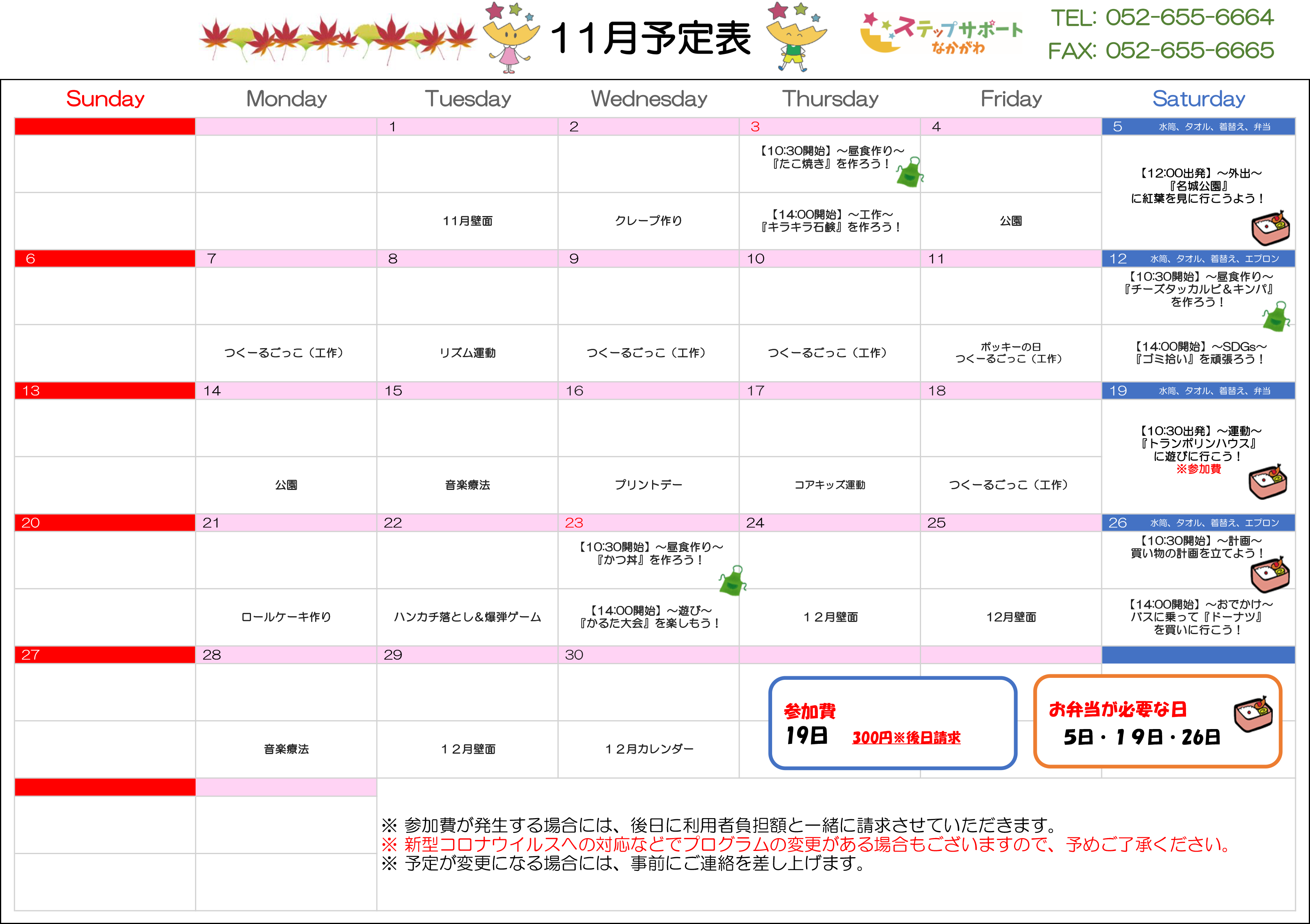 ステップグループの月間行事予定表