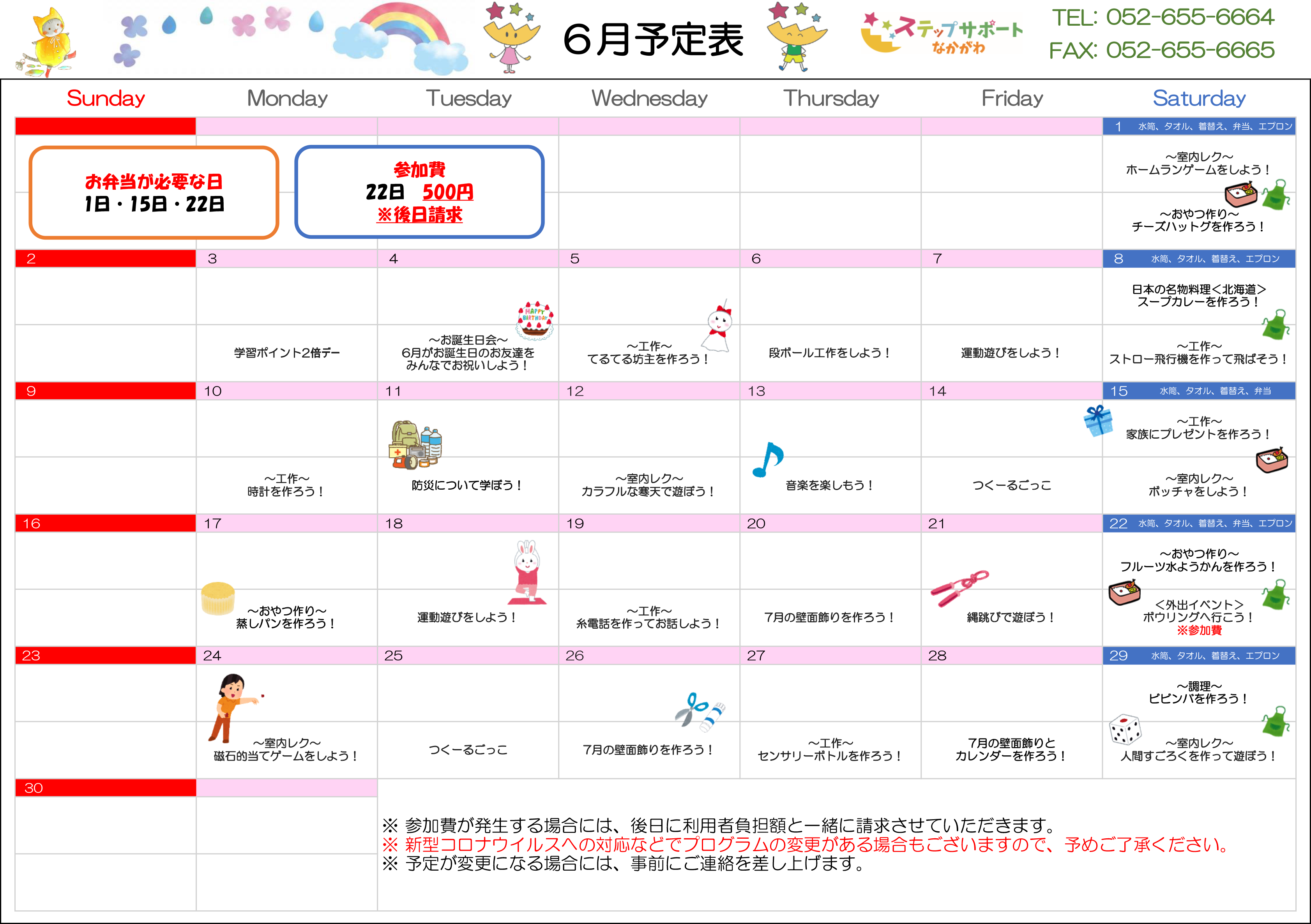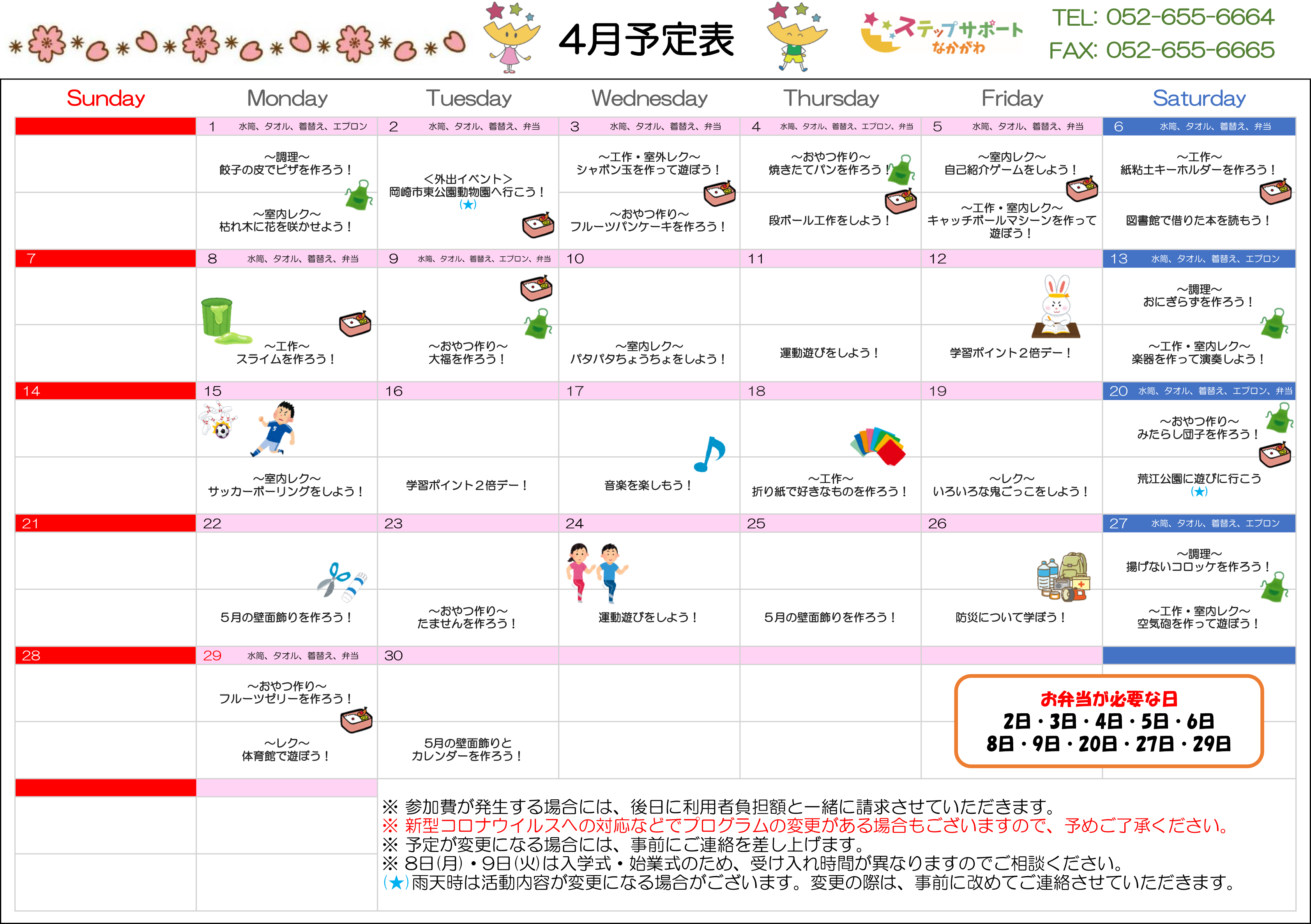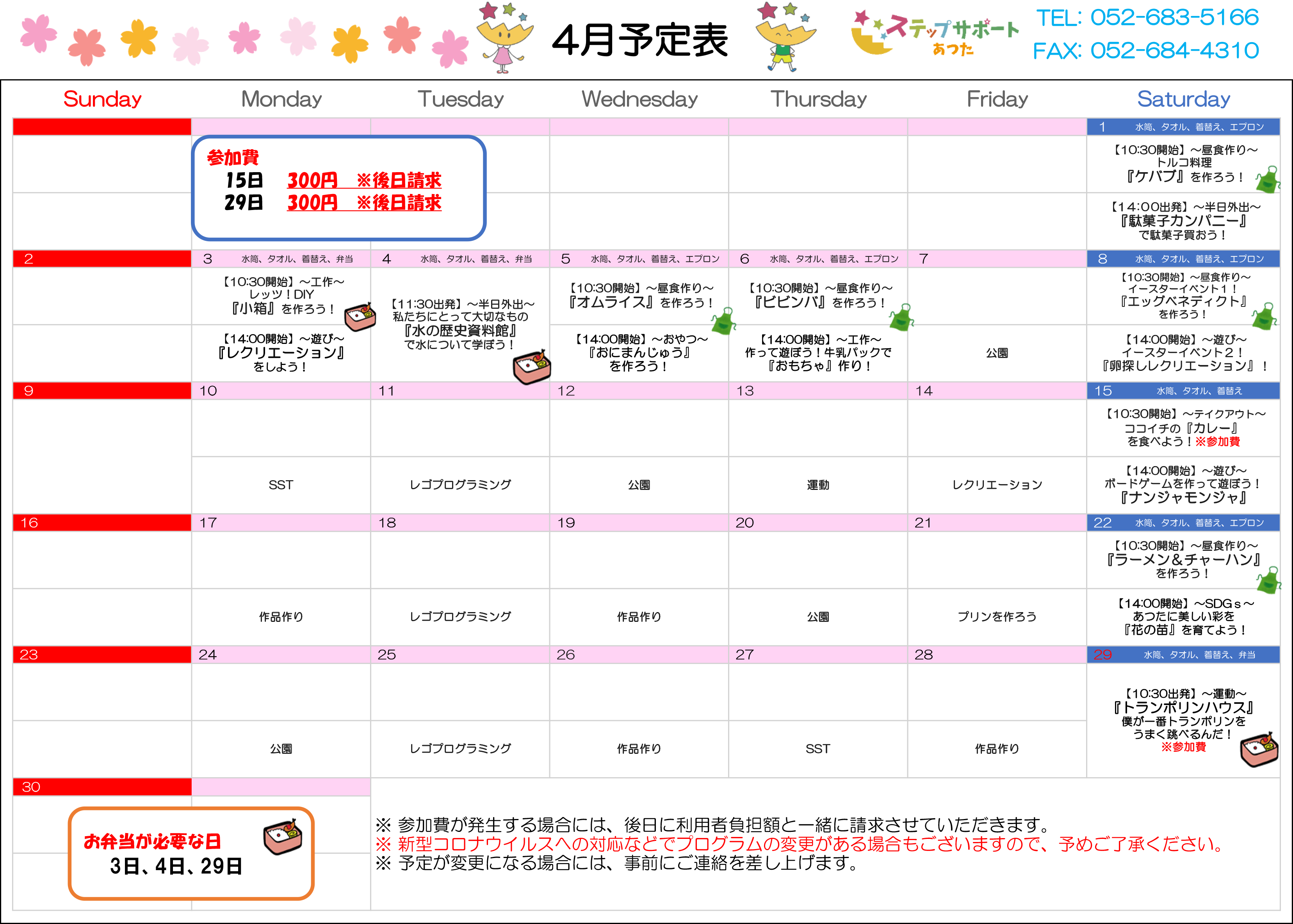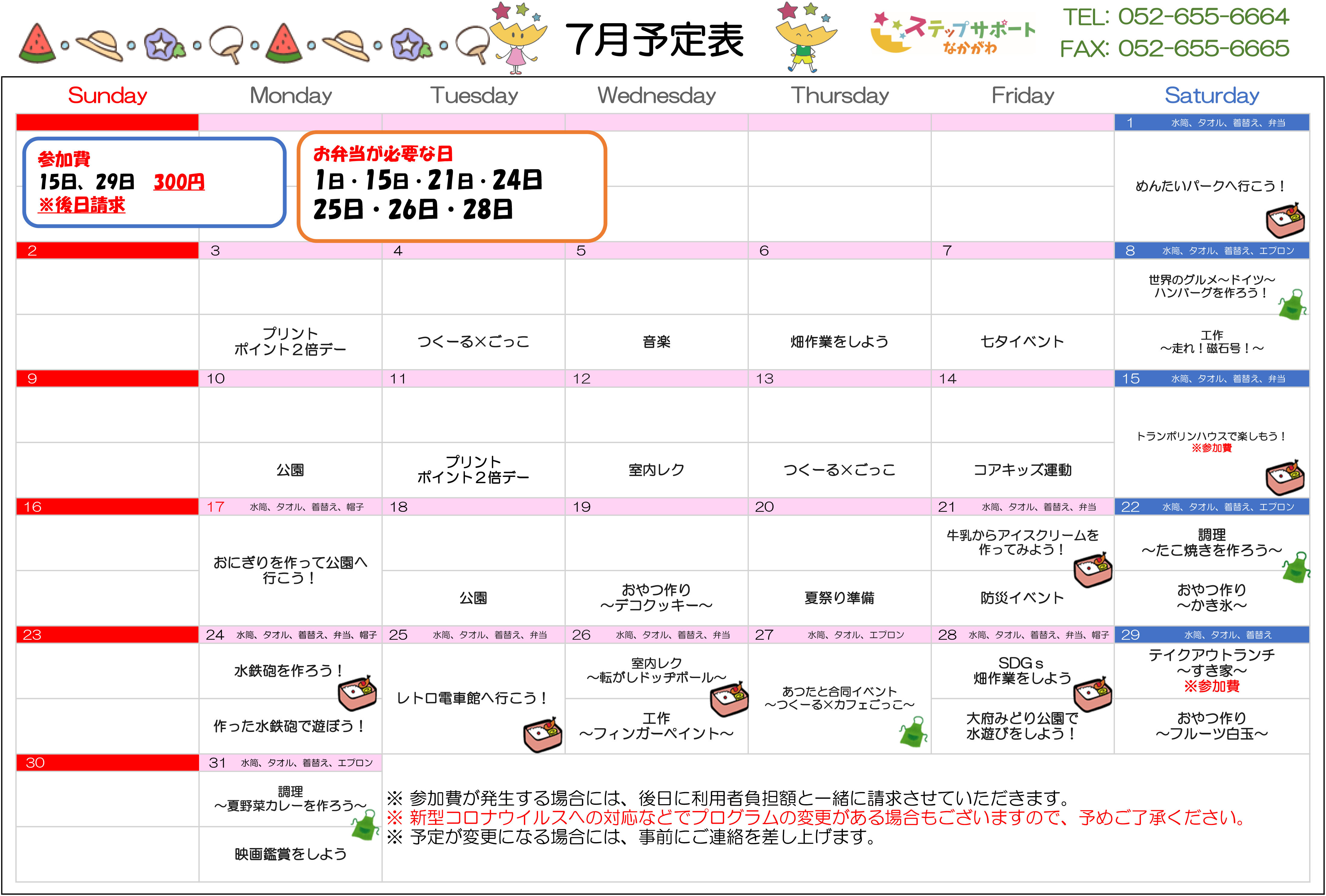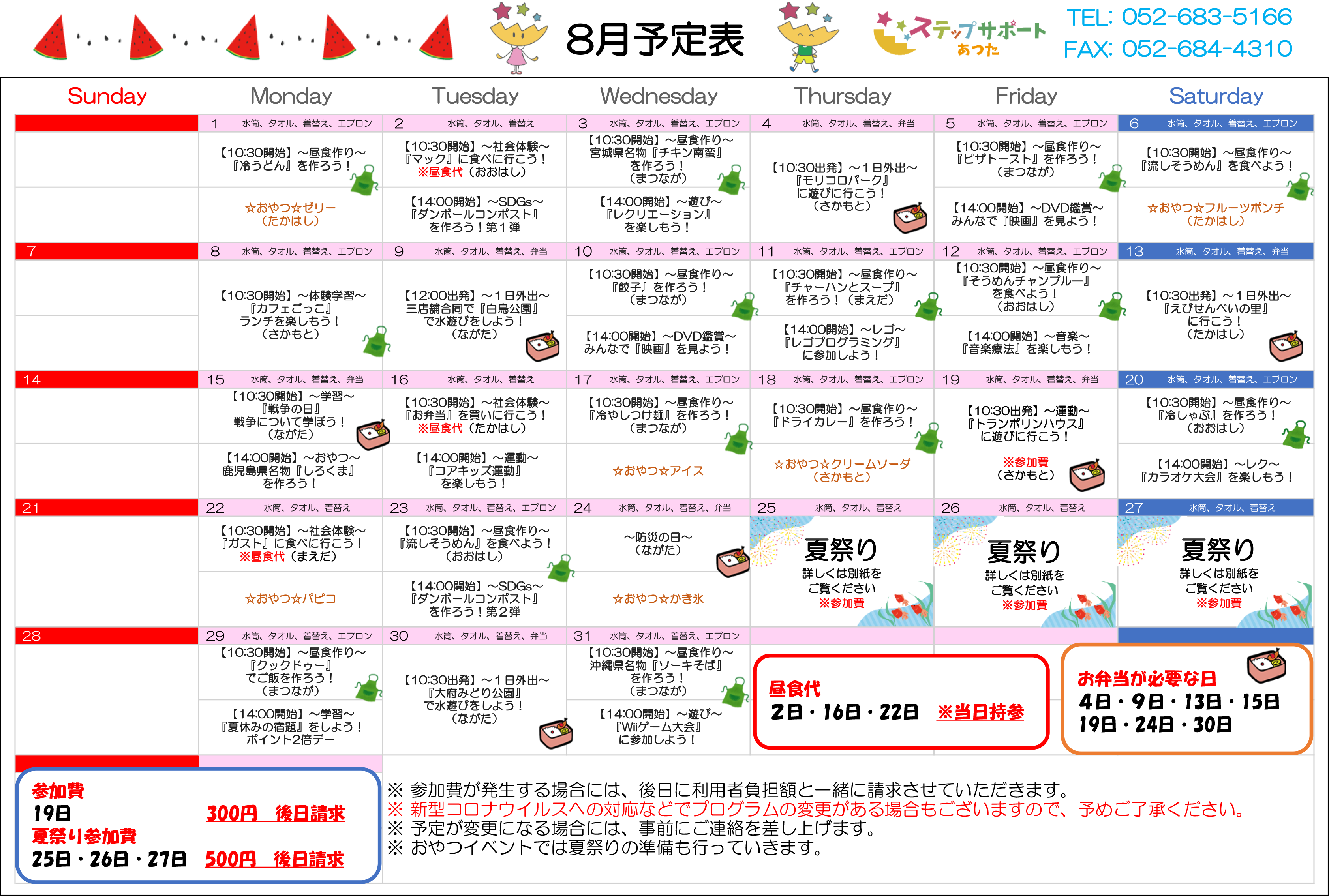 ステップグループの月間行事予定表