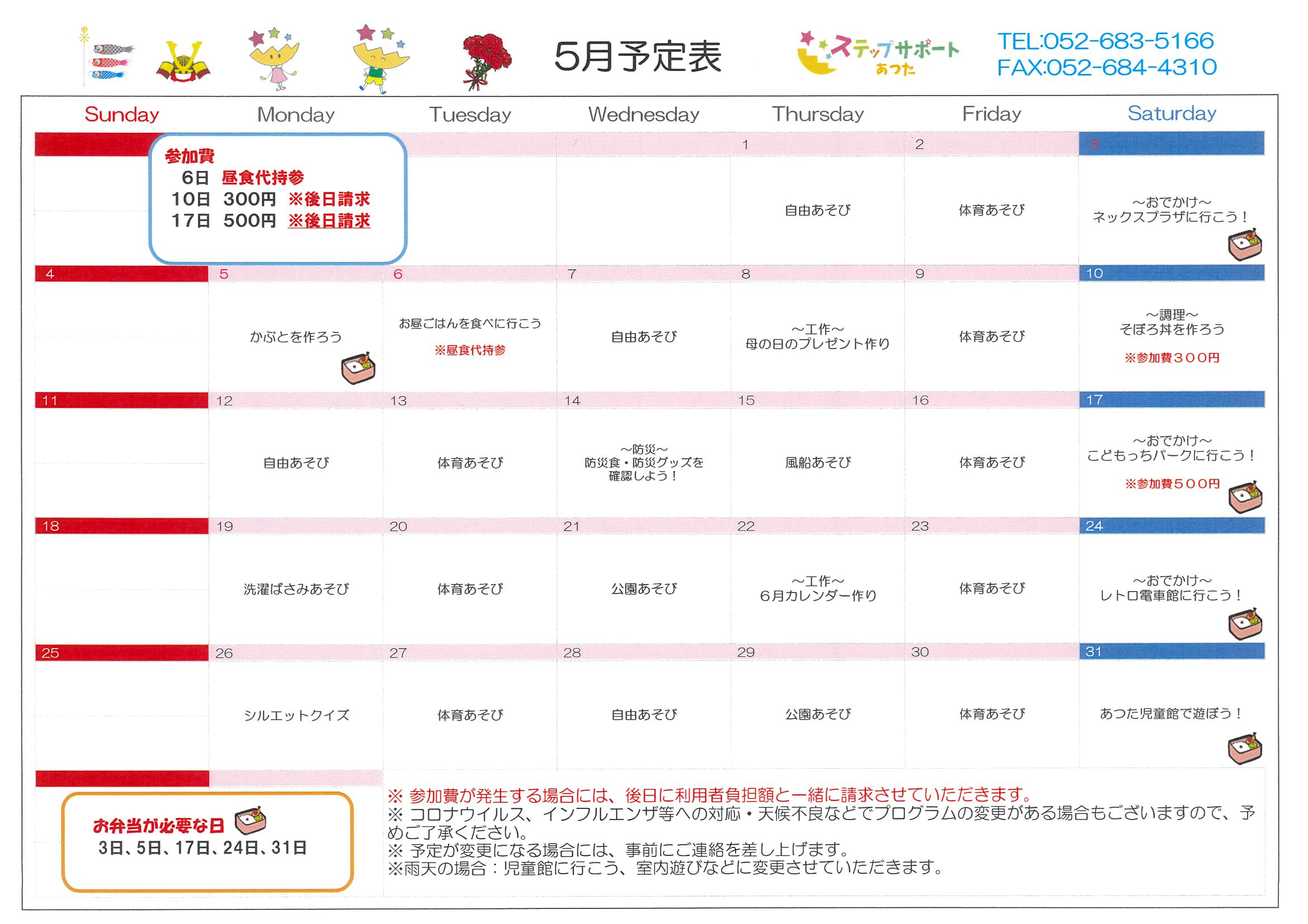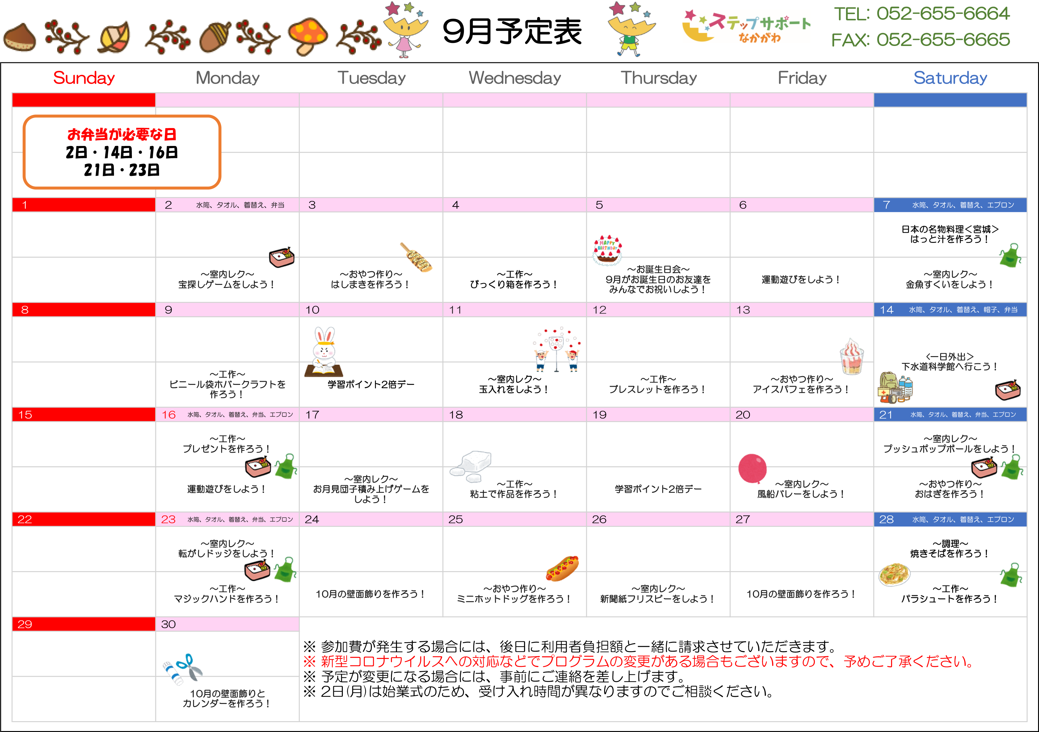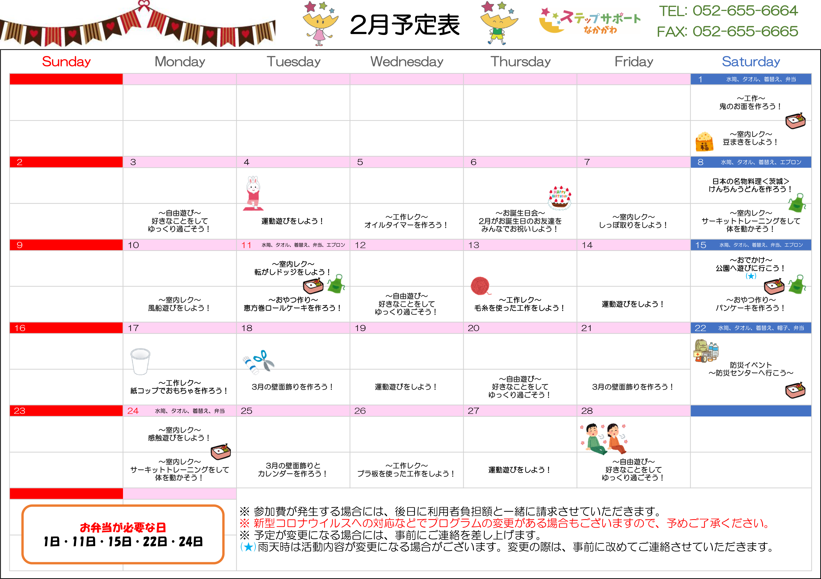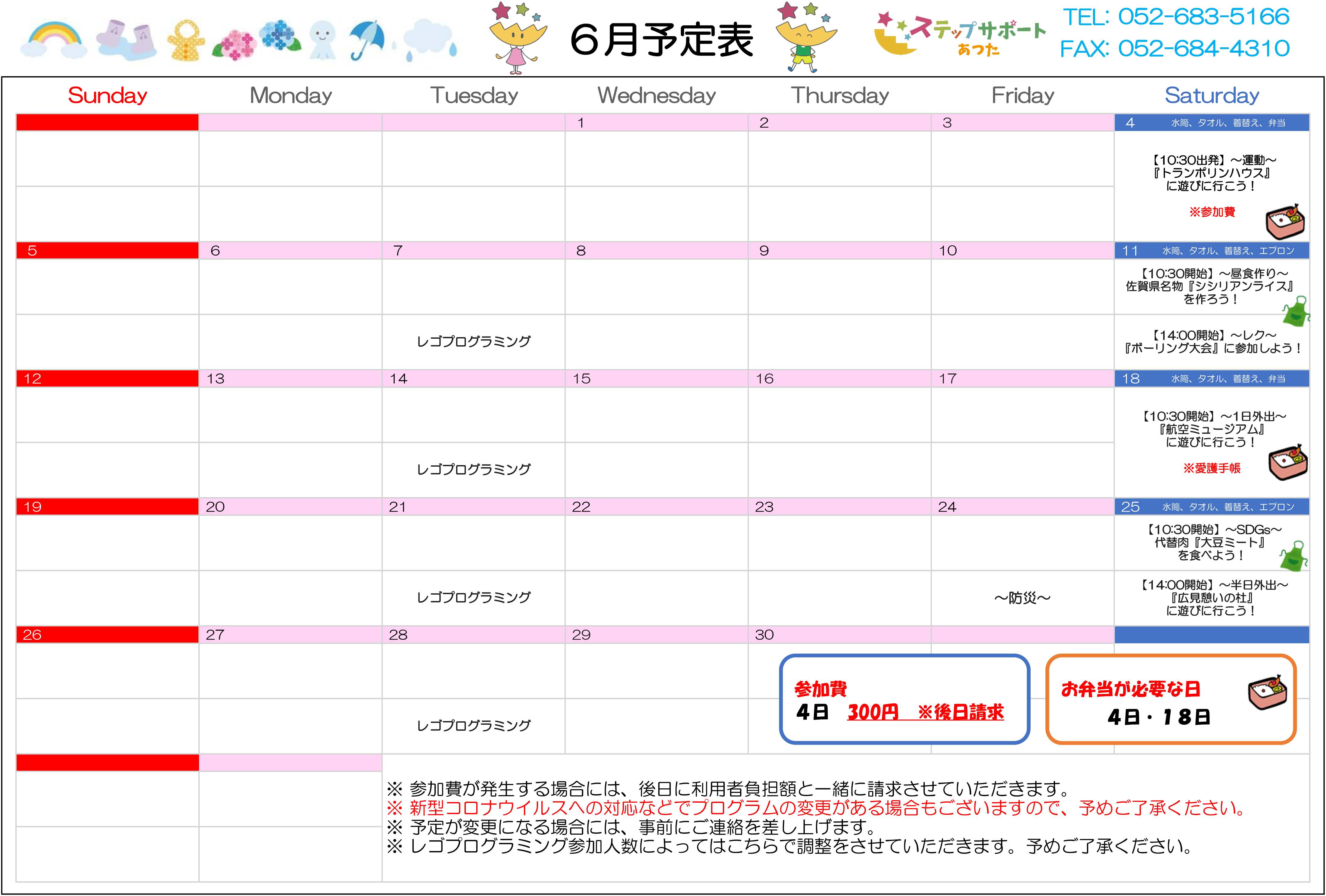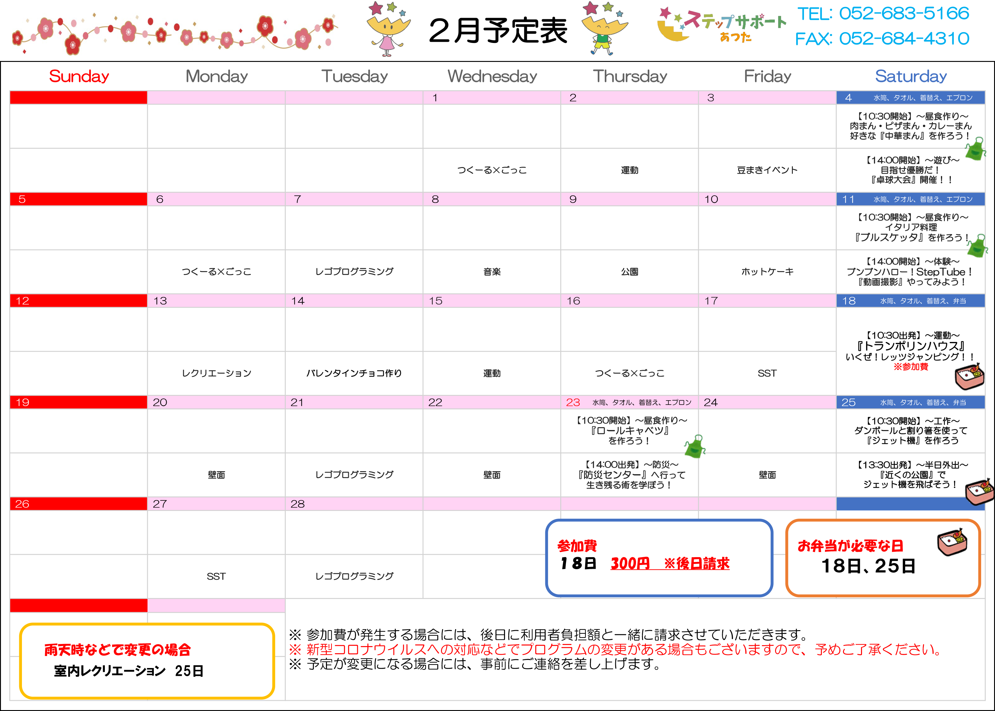 ステップグループの月間行事予定表