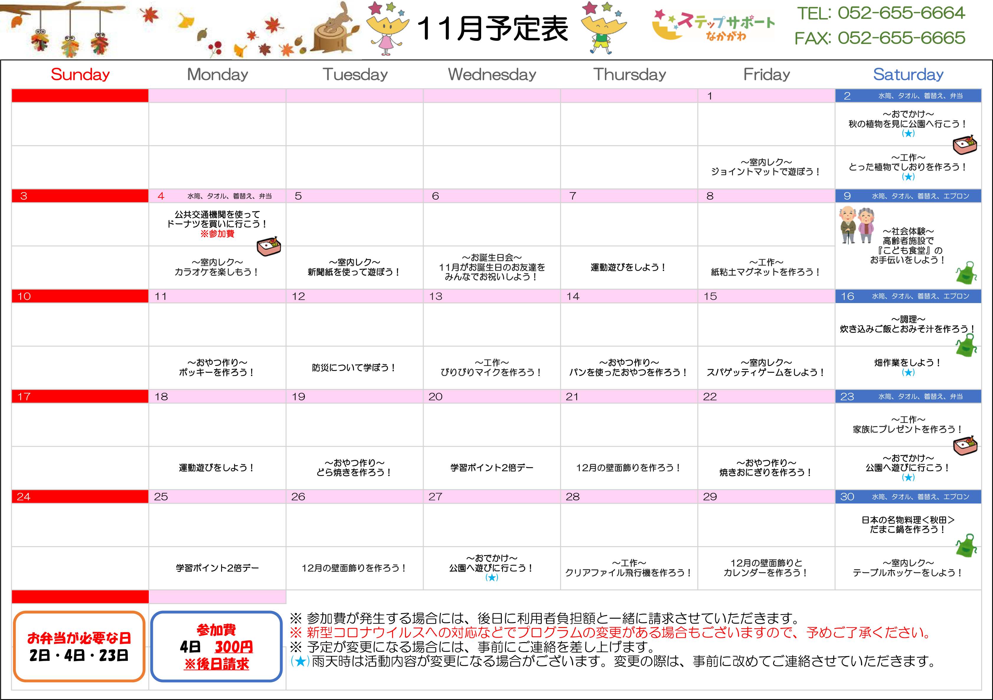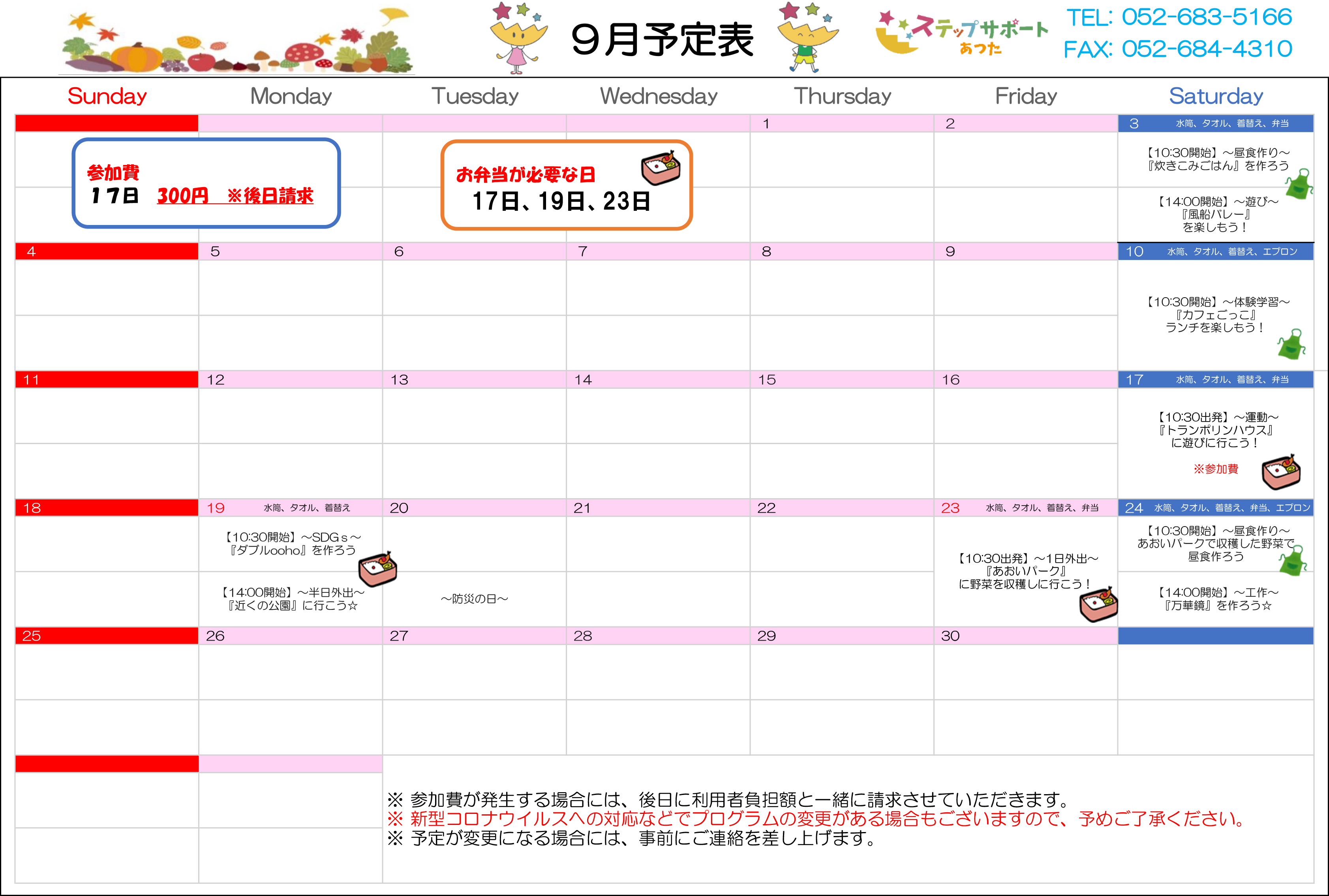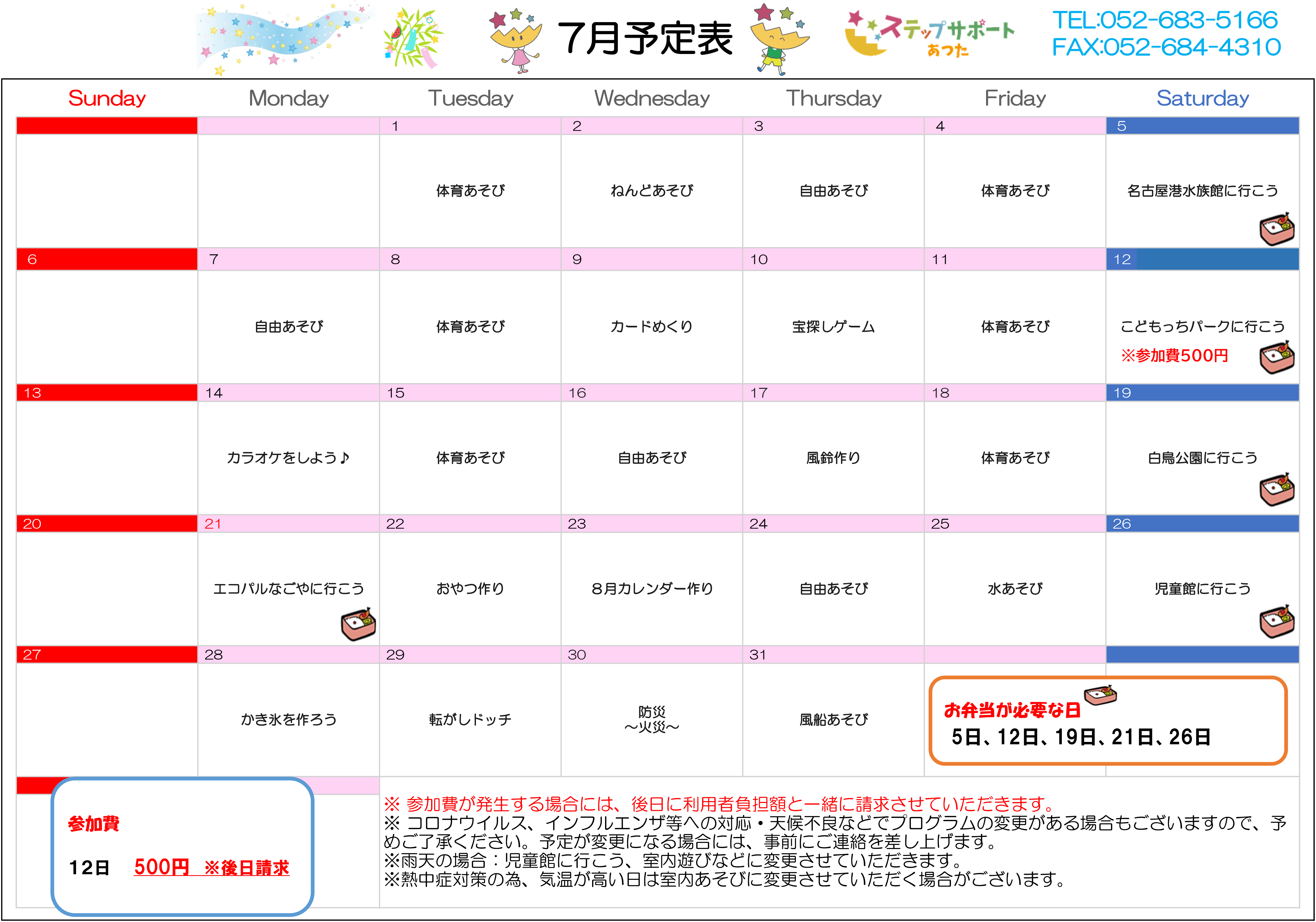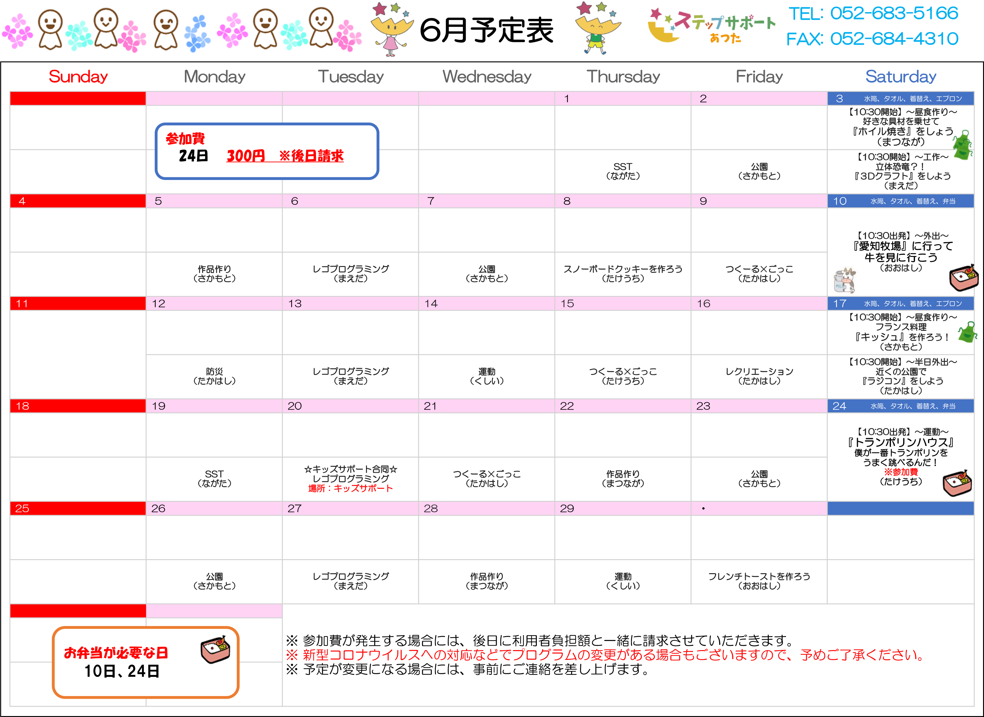 ステップグループの月間行事予定表