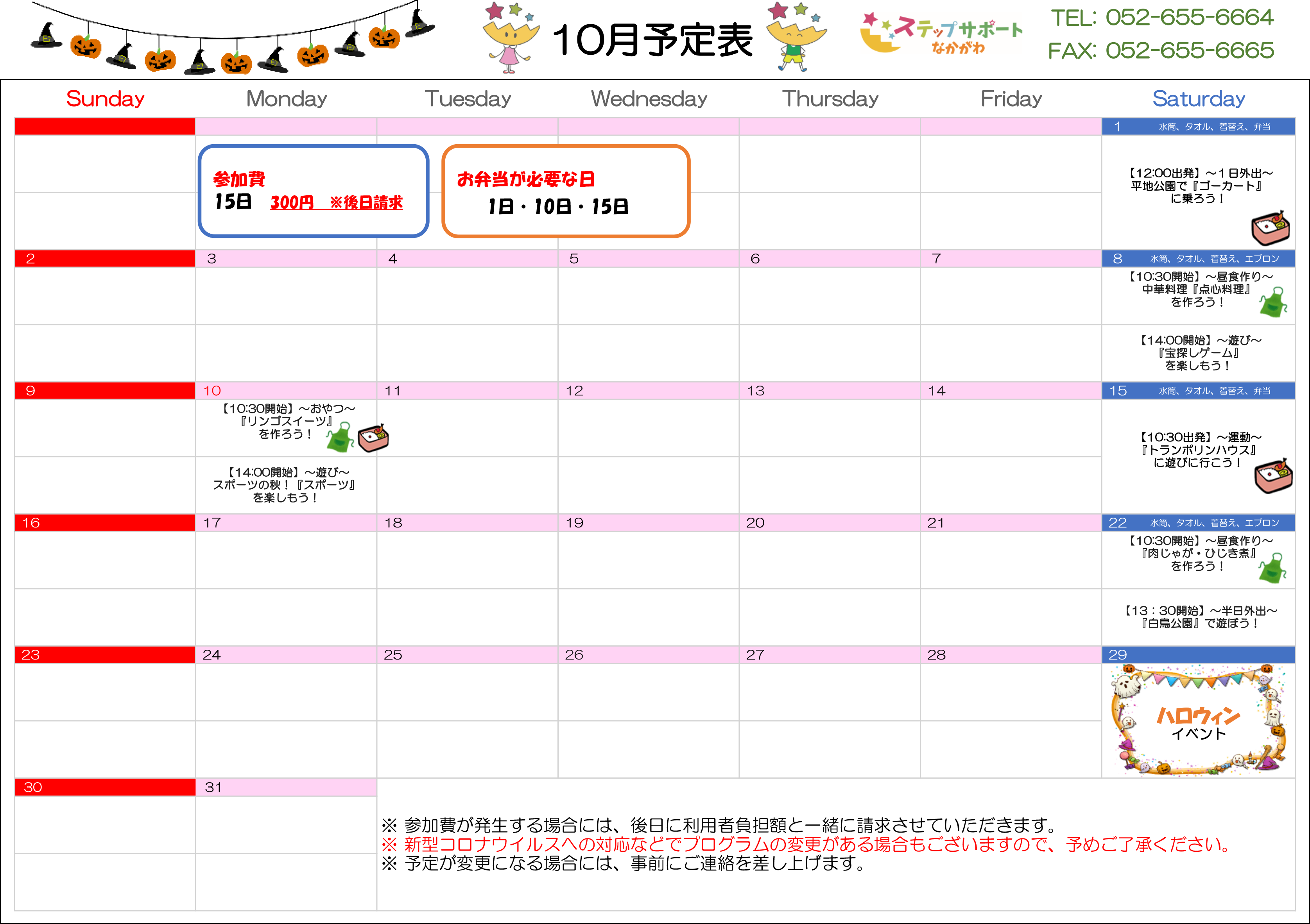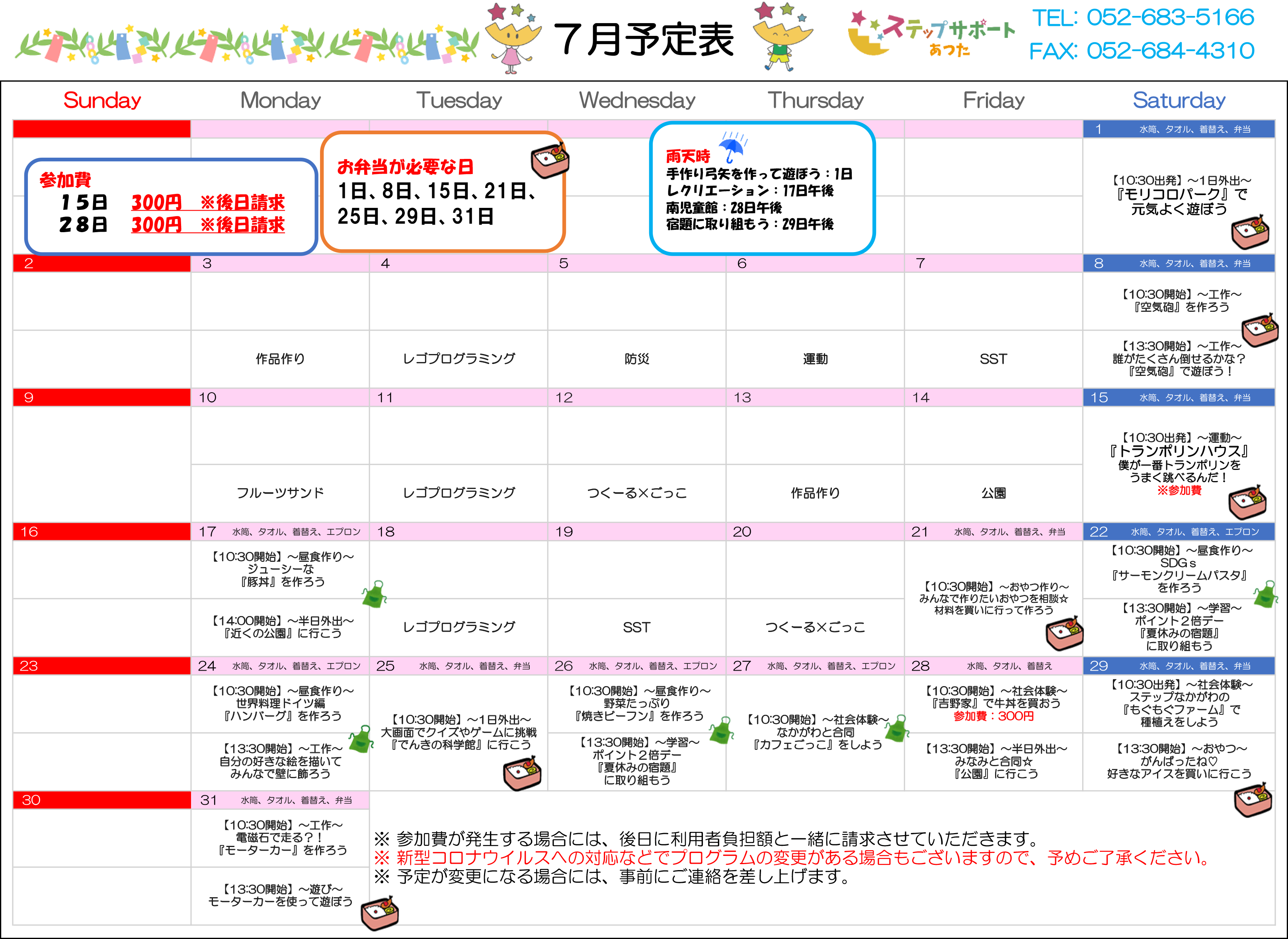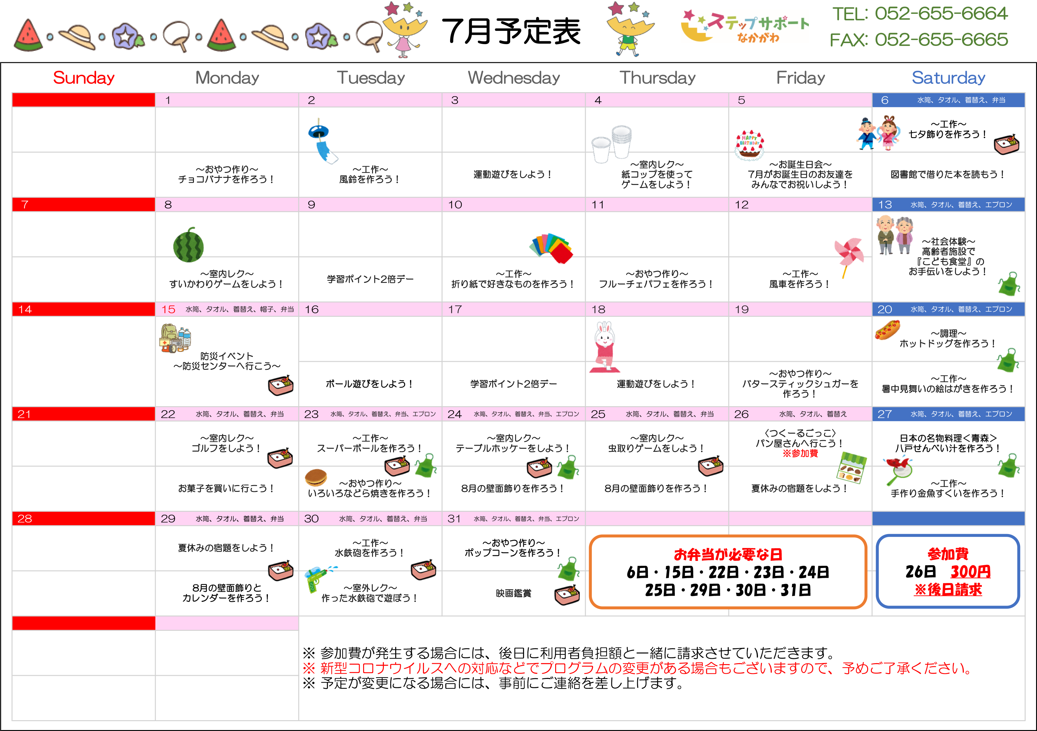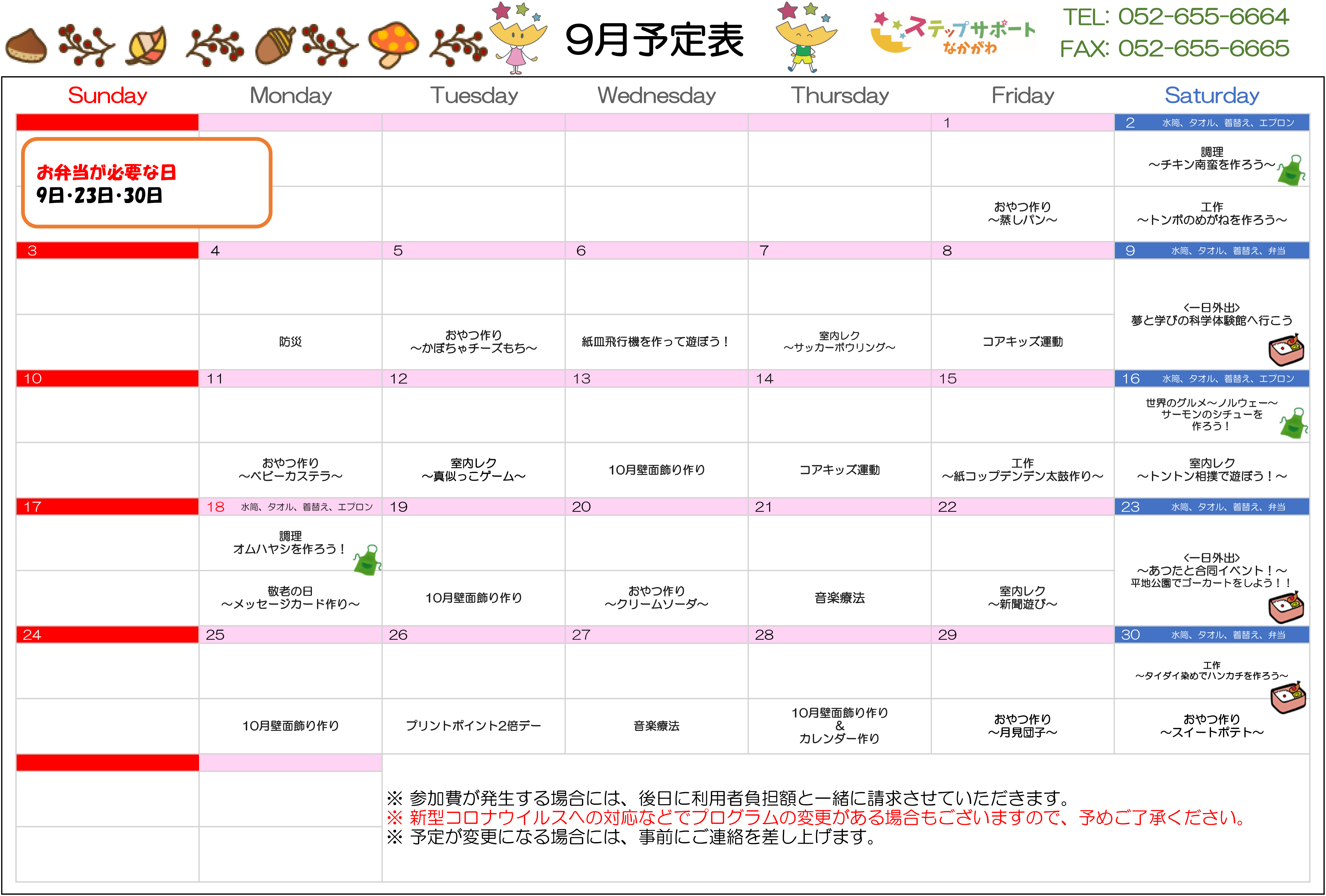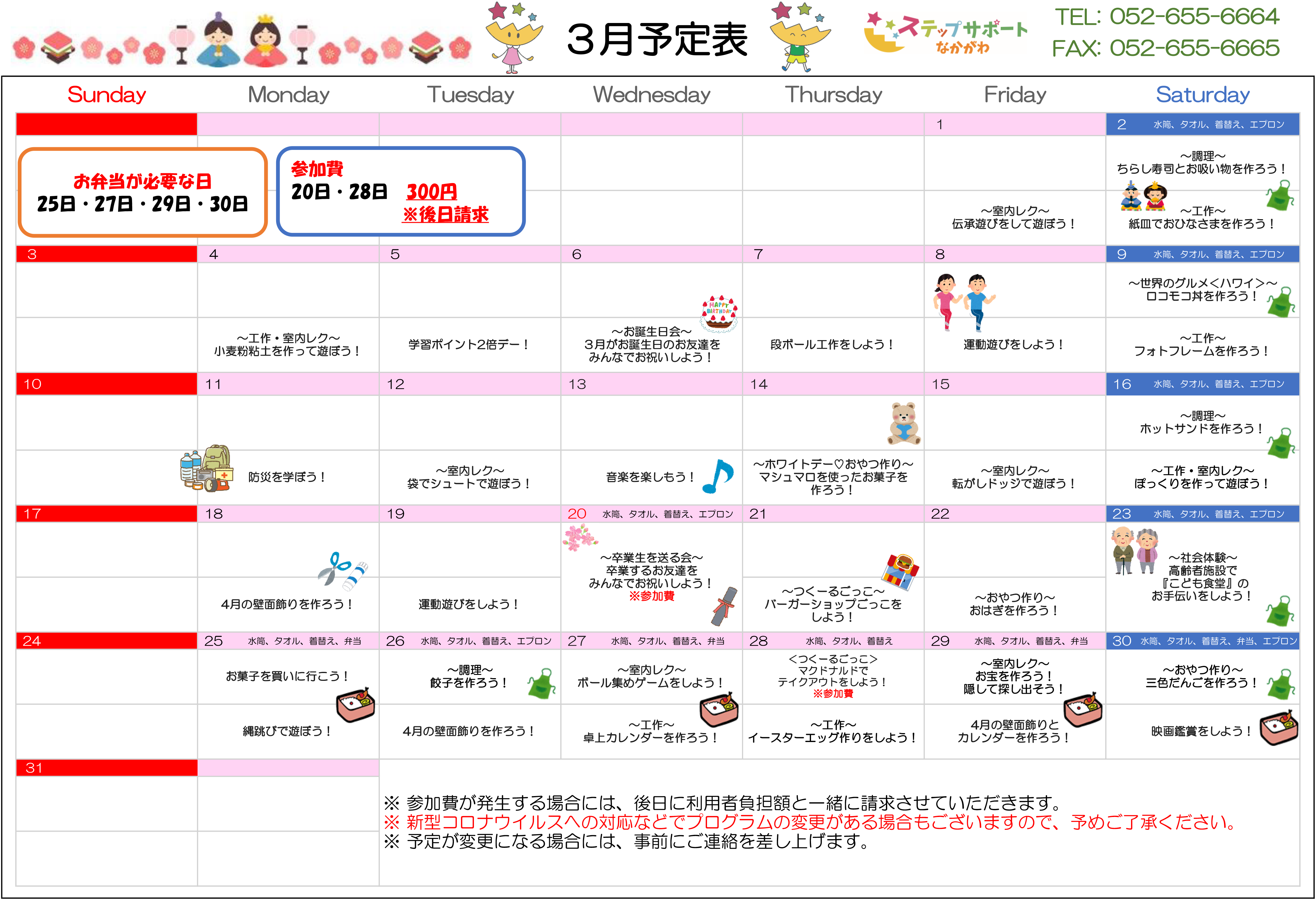 ステップグループの月間行事予定表