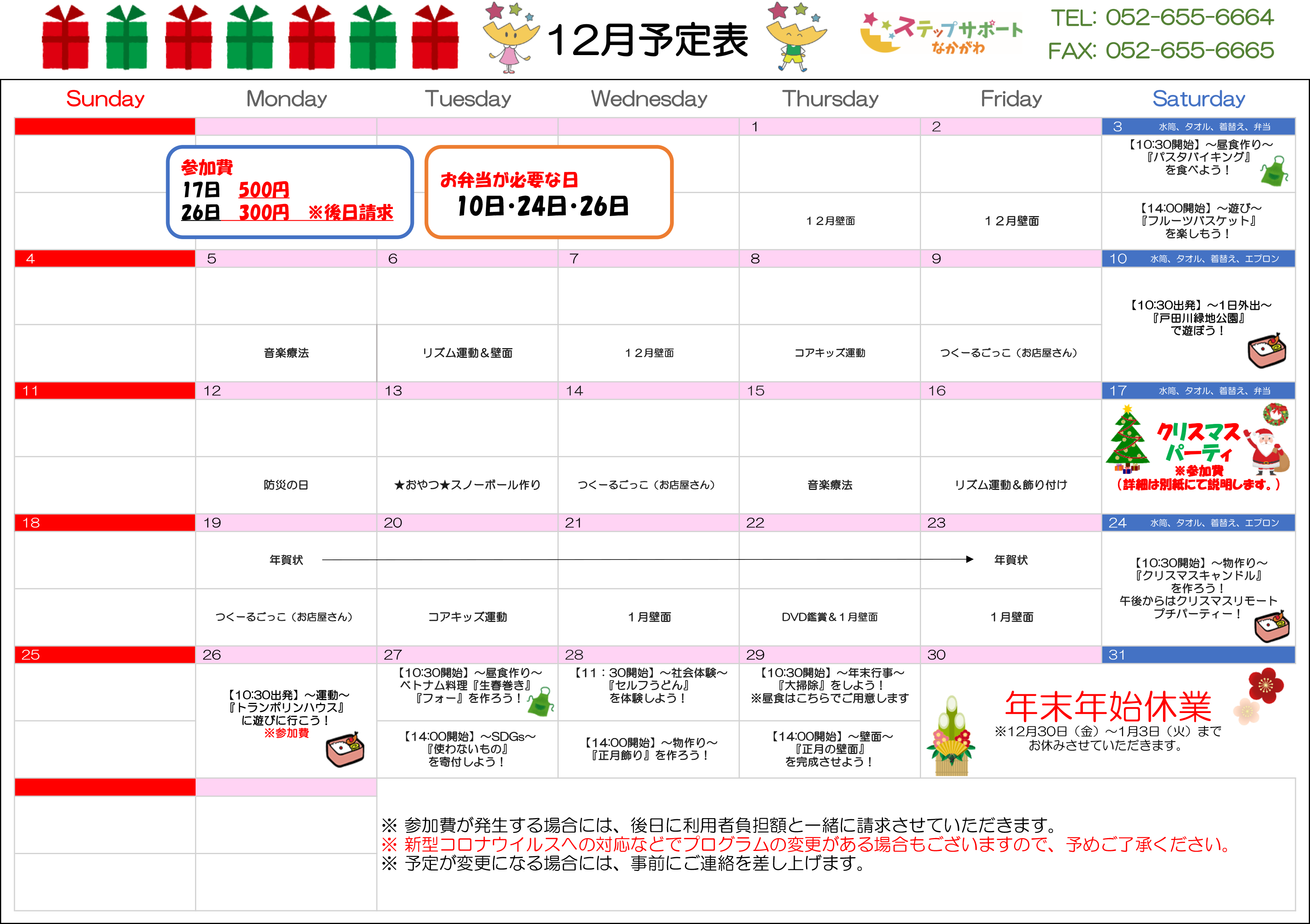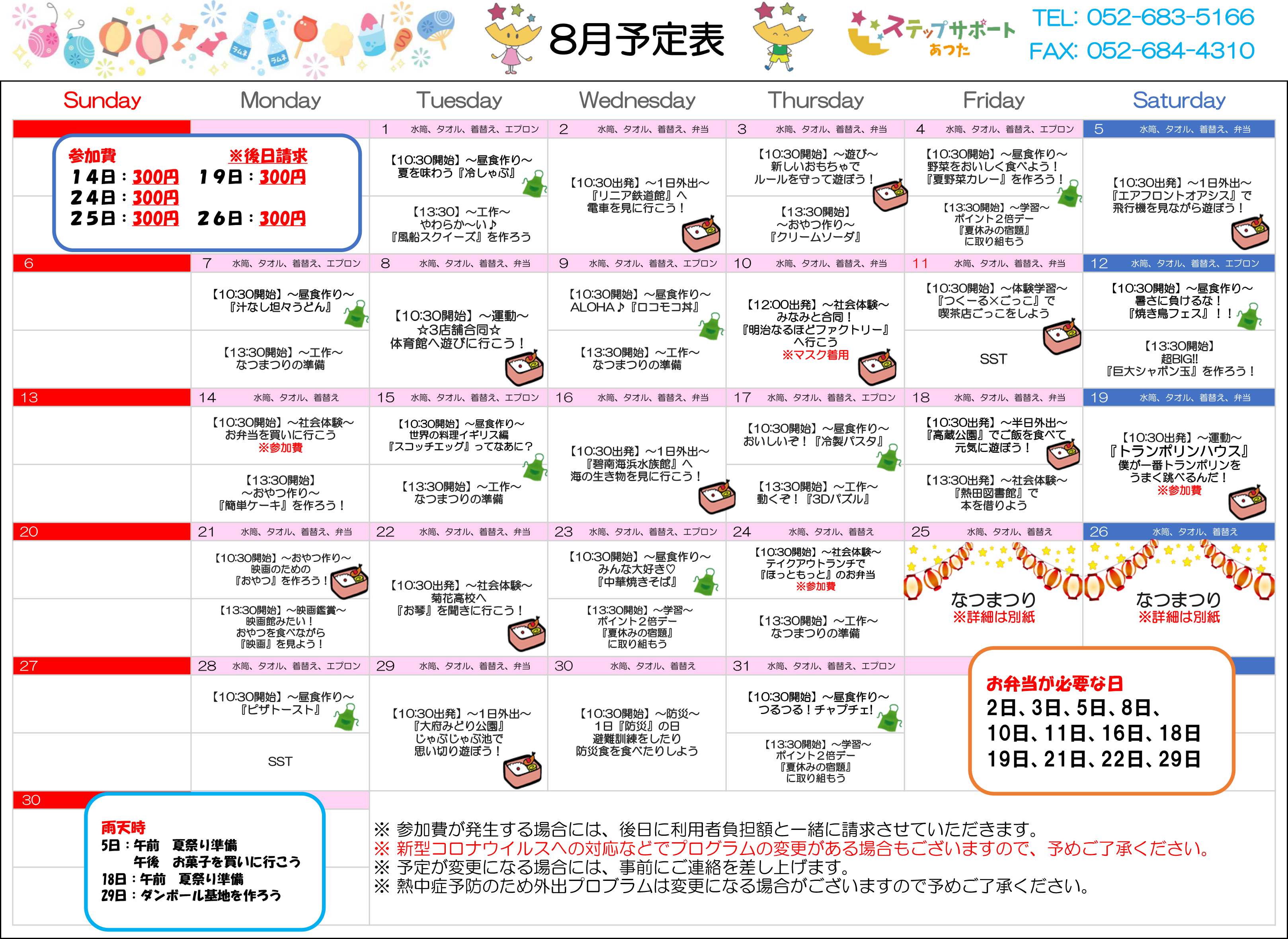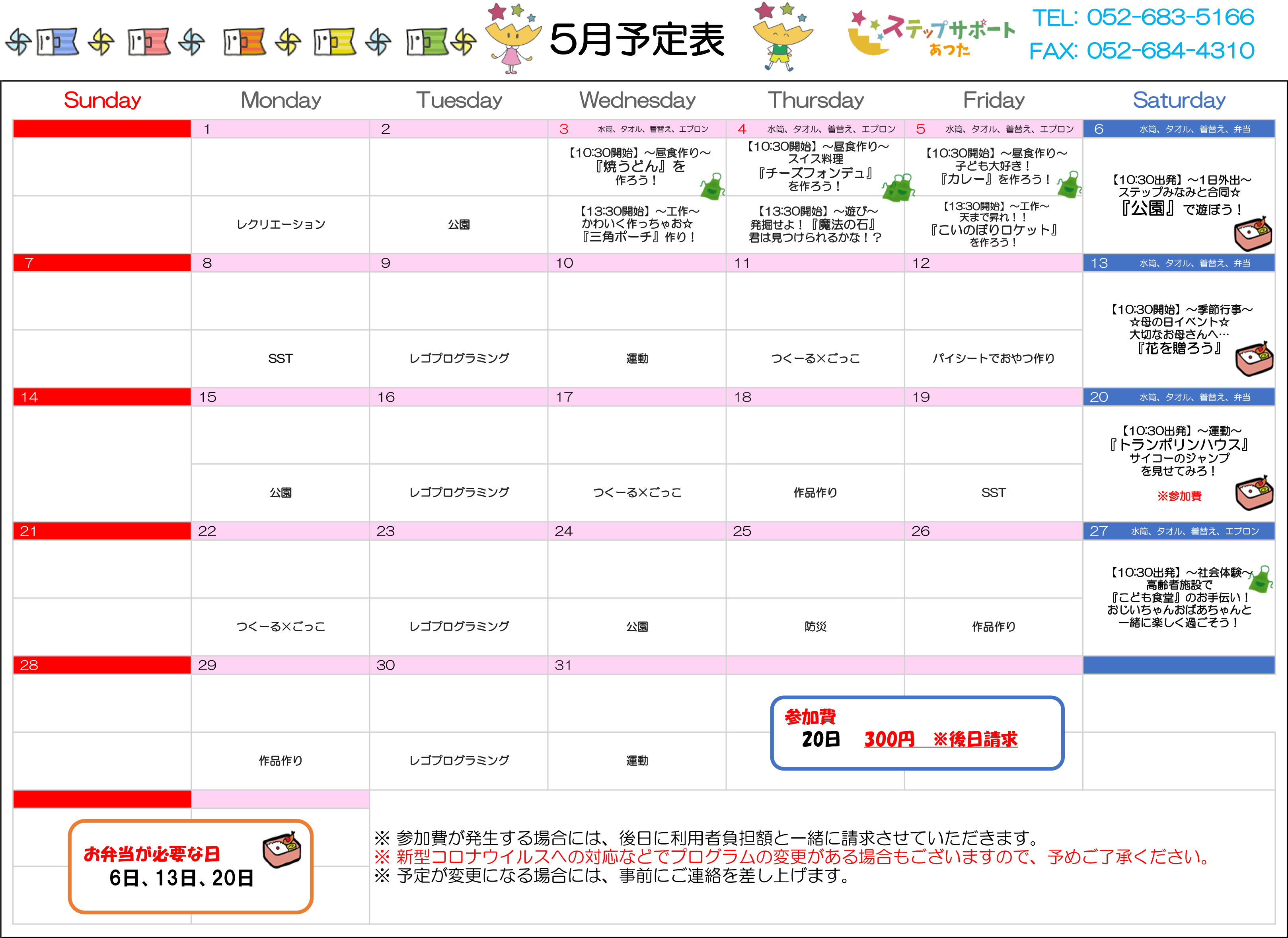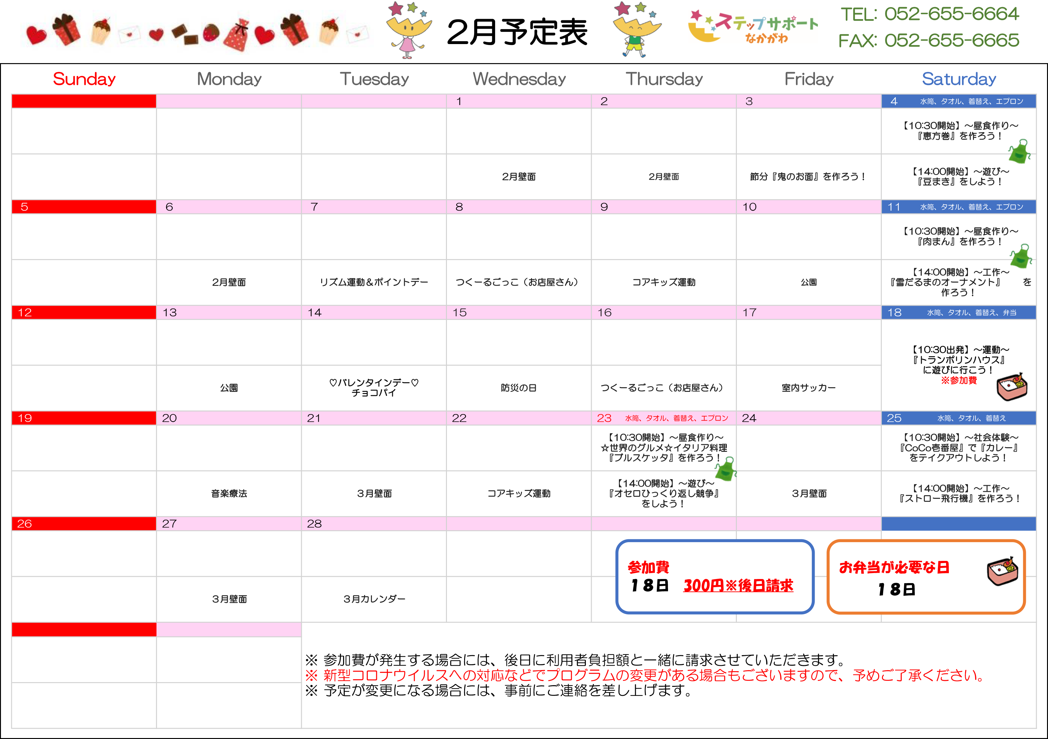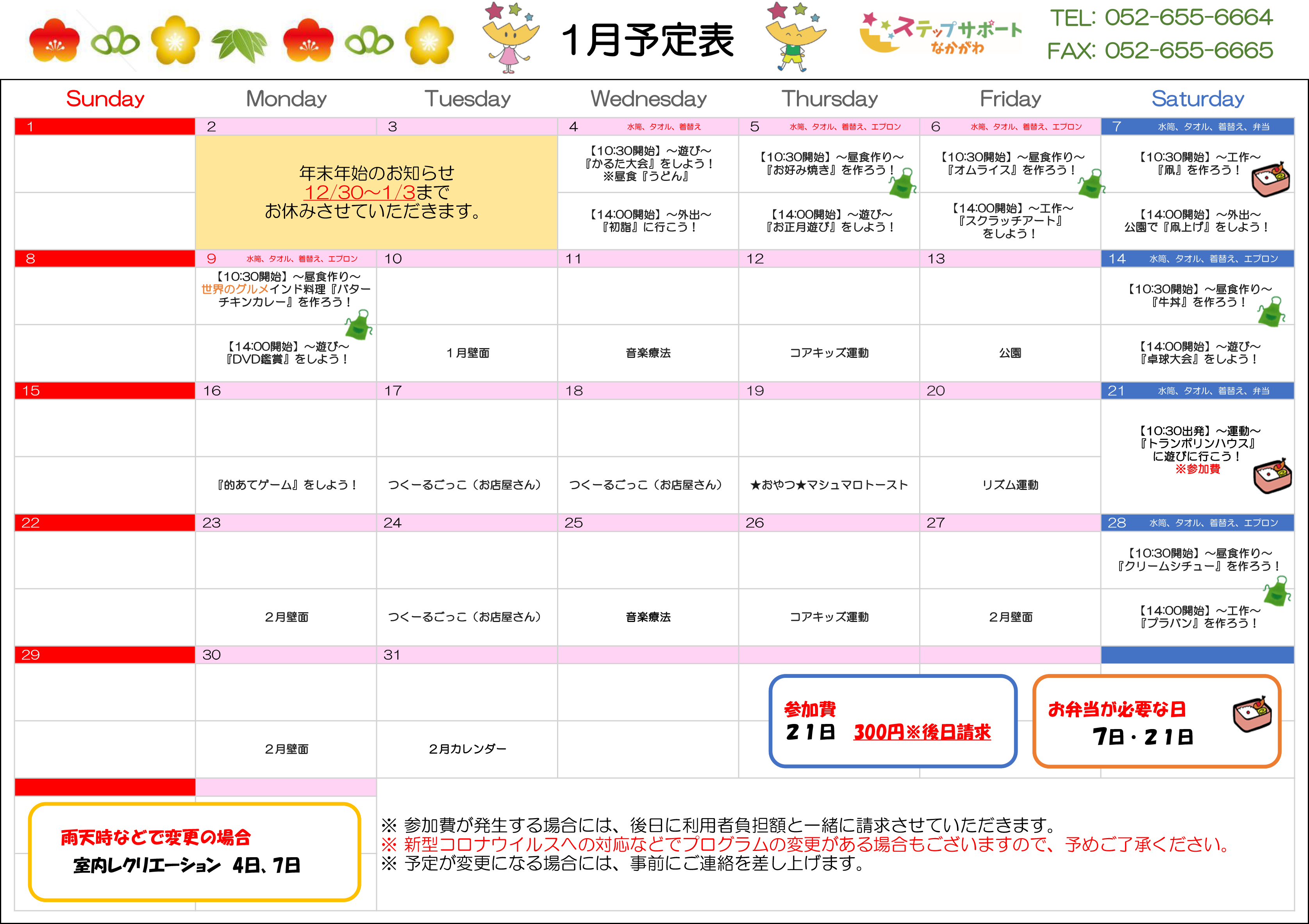 ステップグループの月間行事予定表
