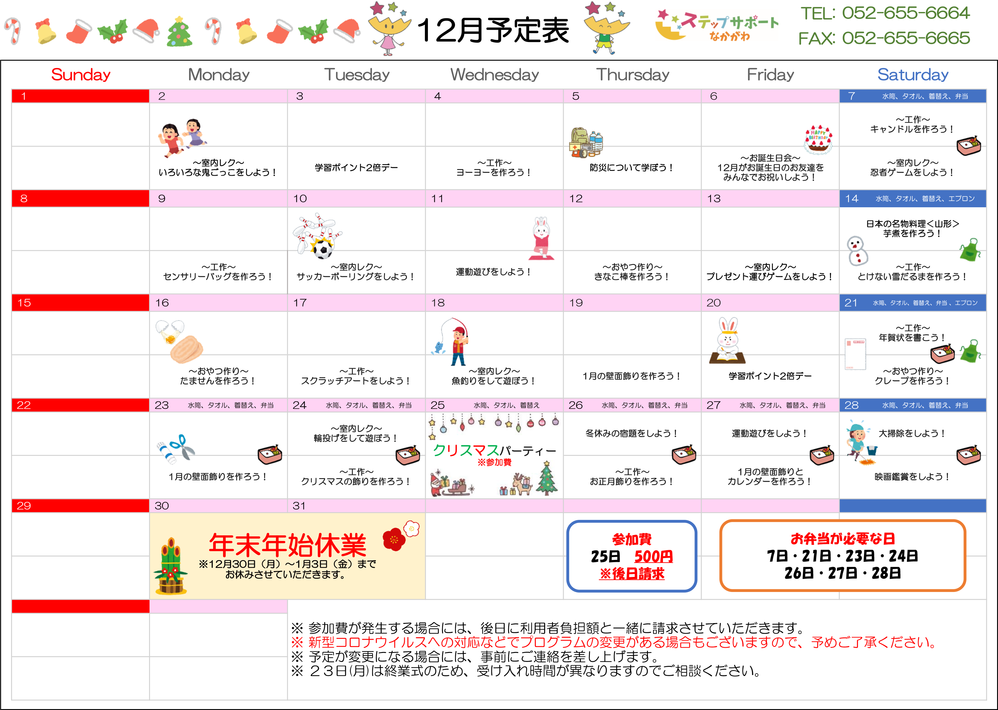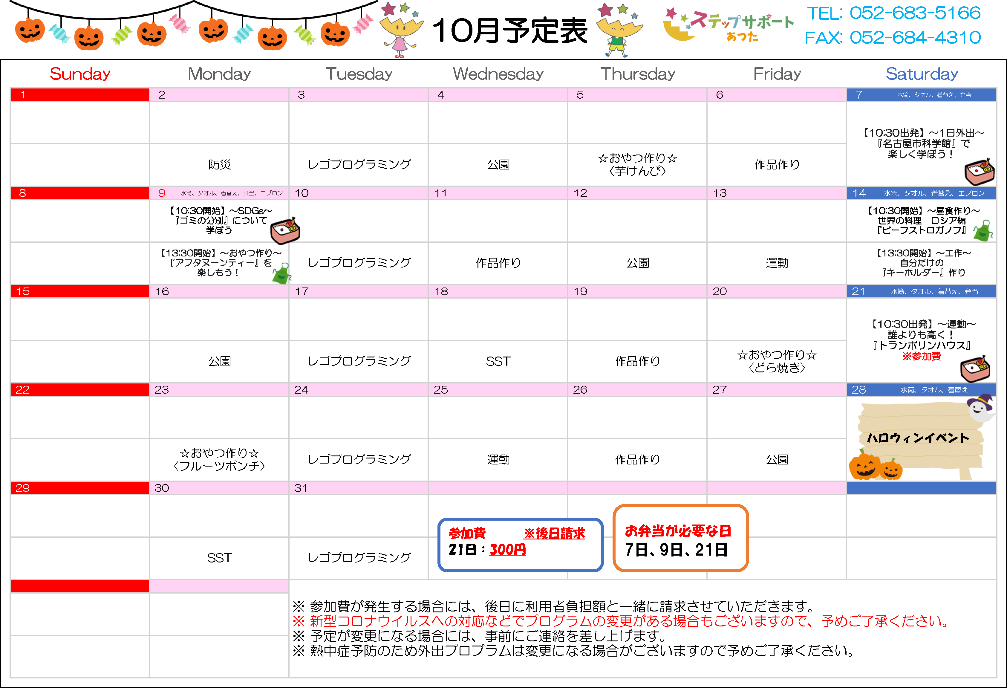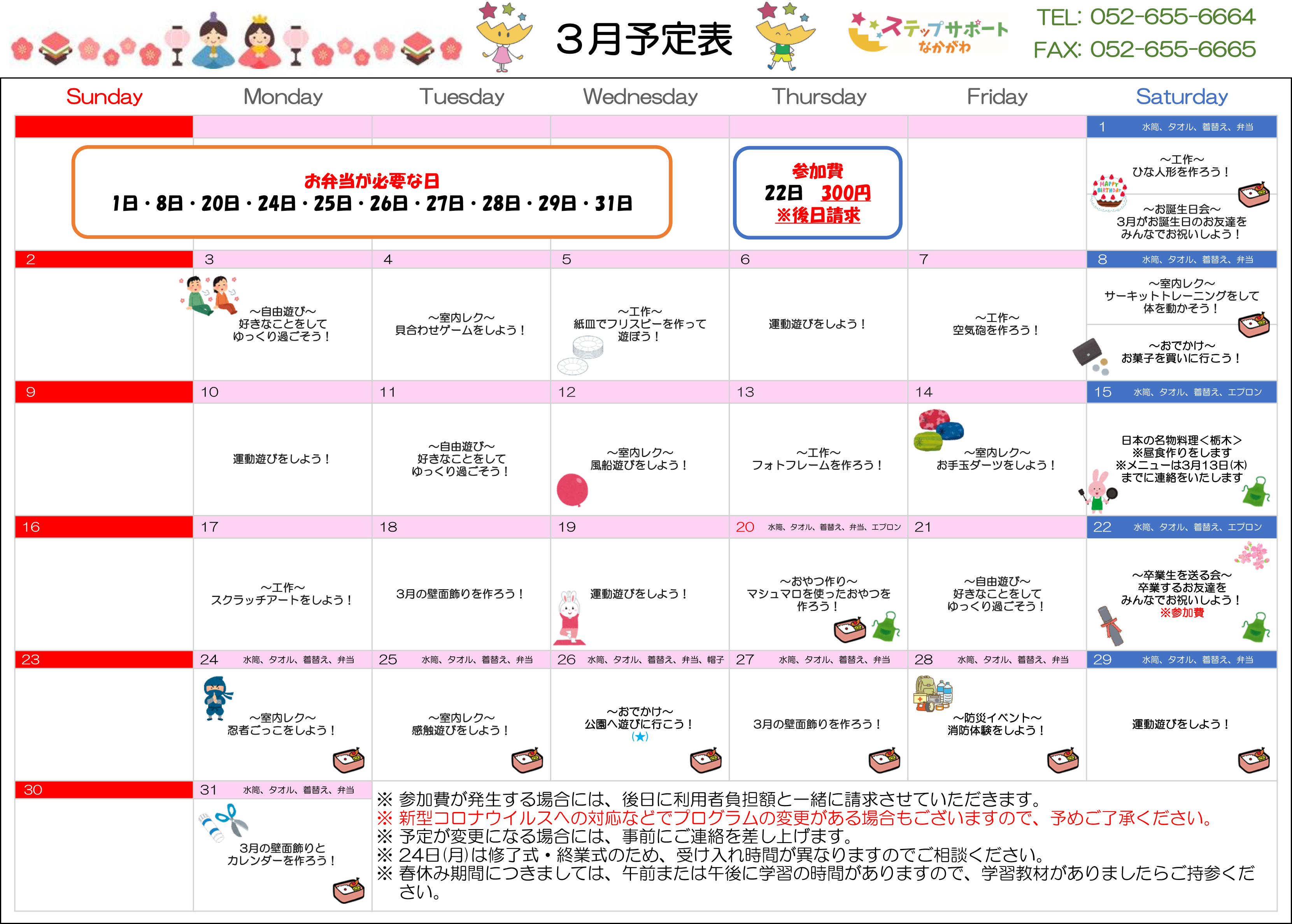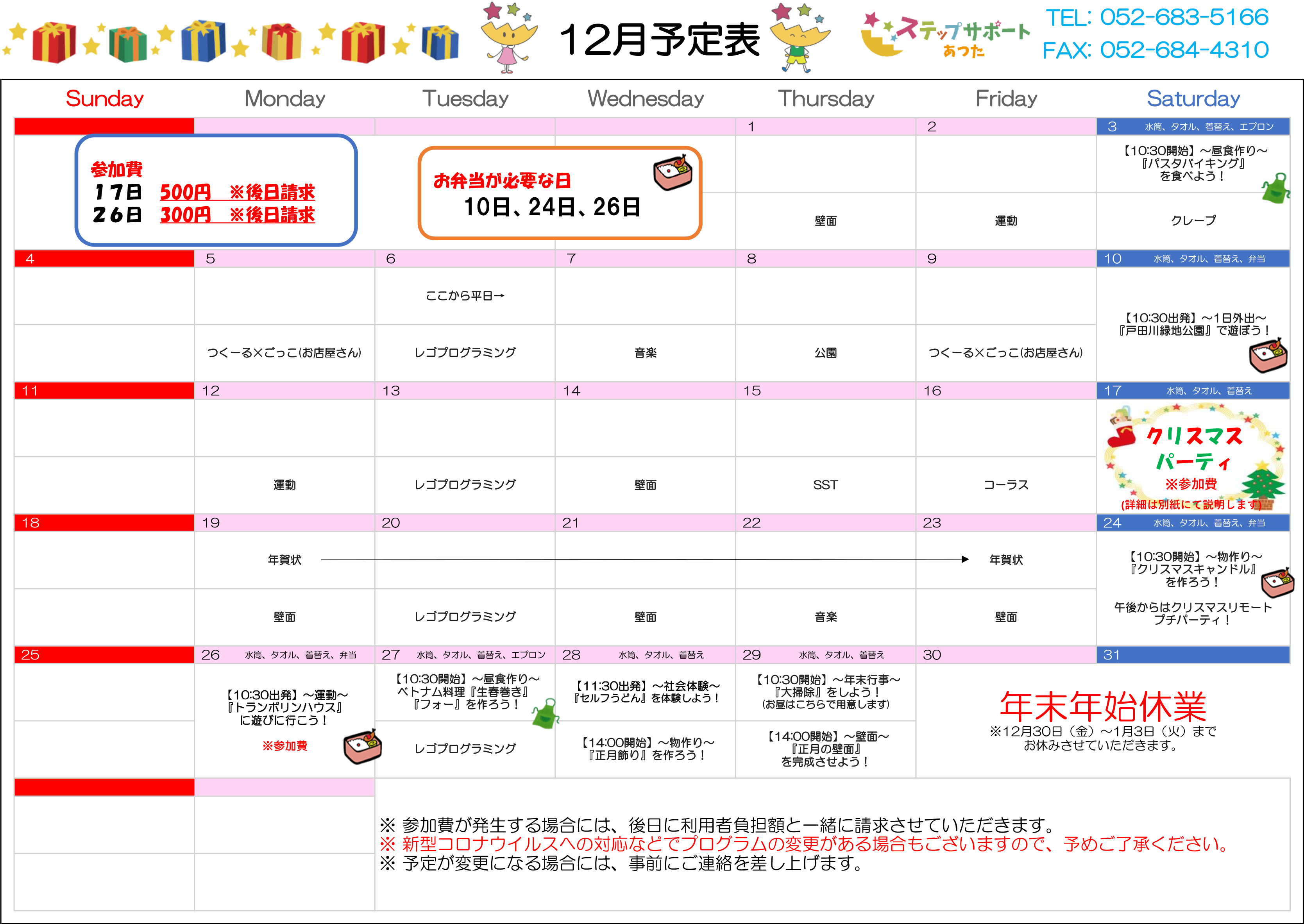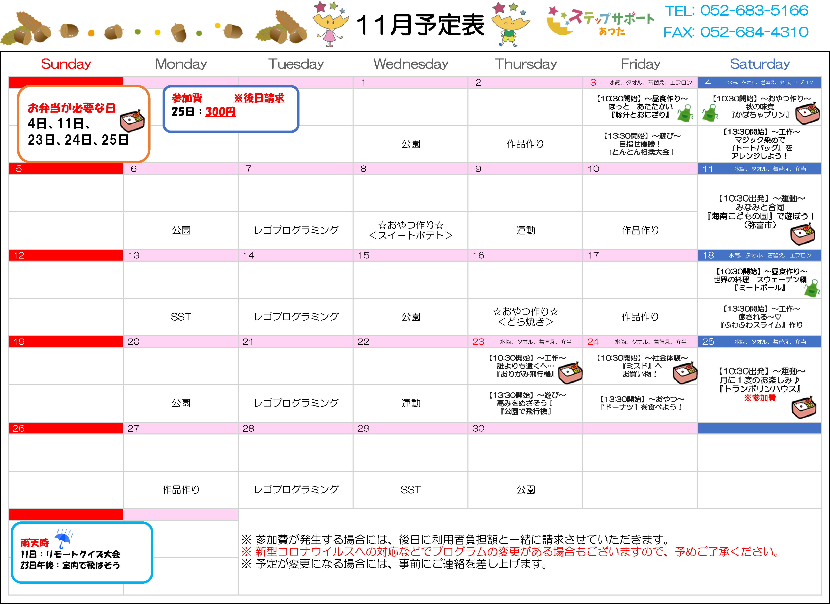 ステップグループの月間行事予定表