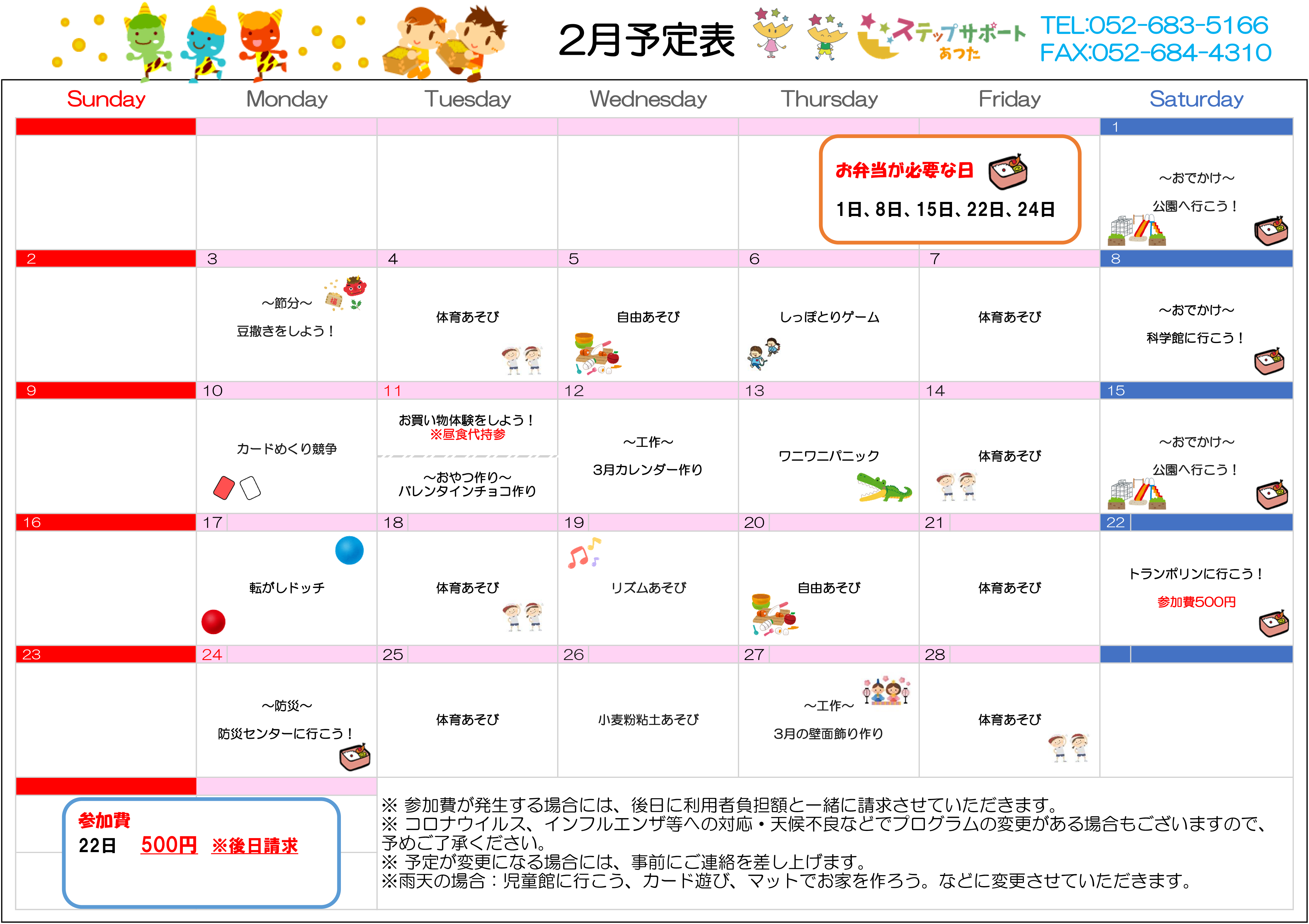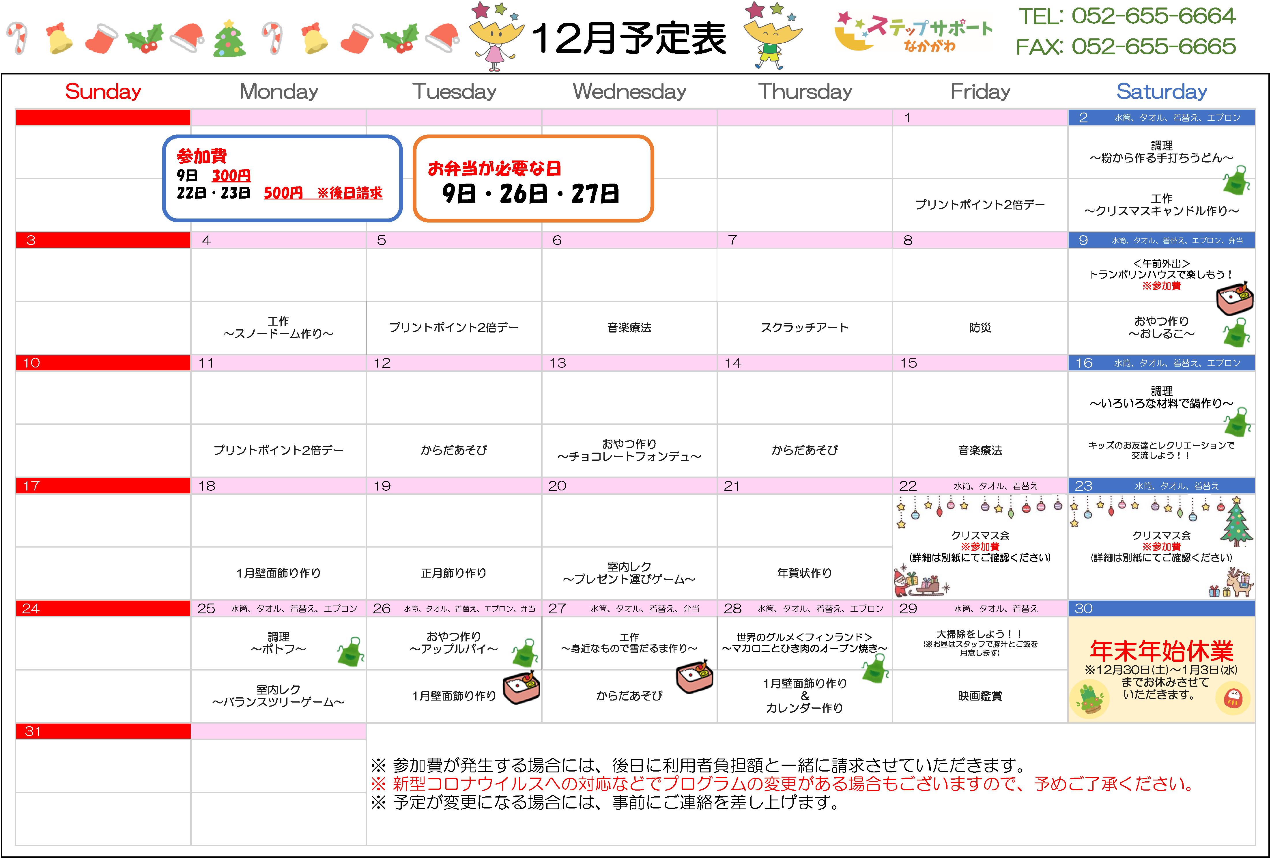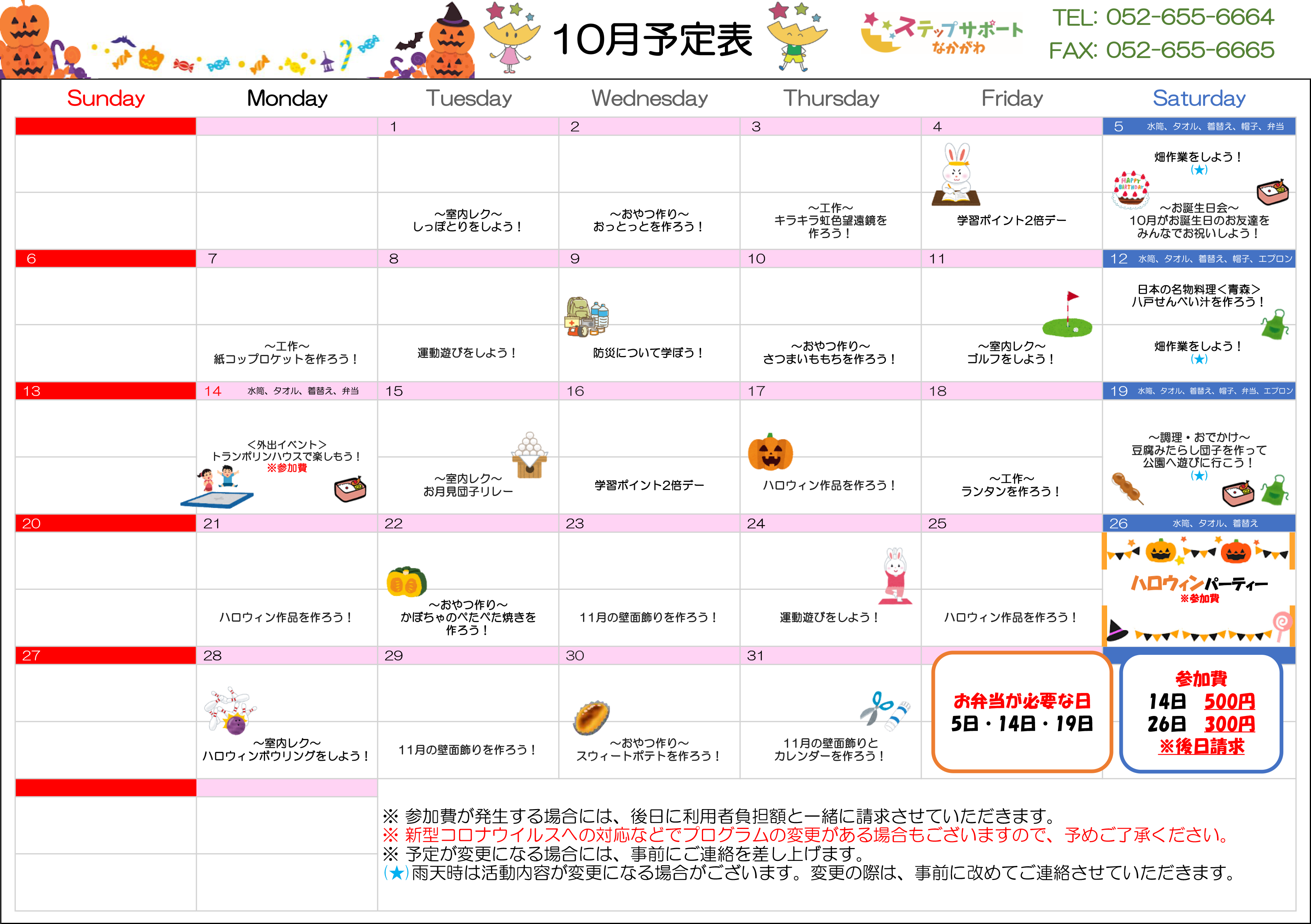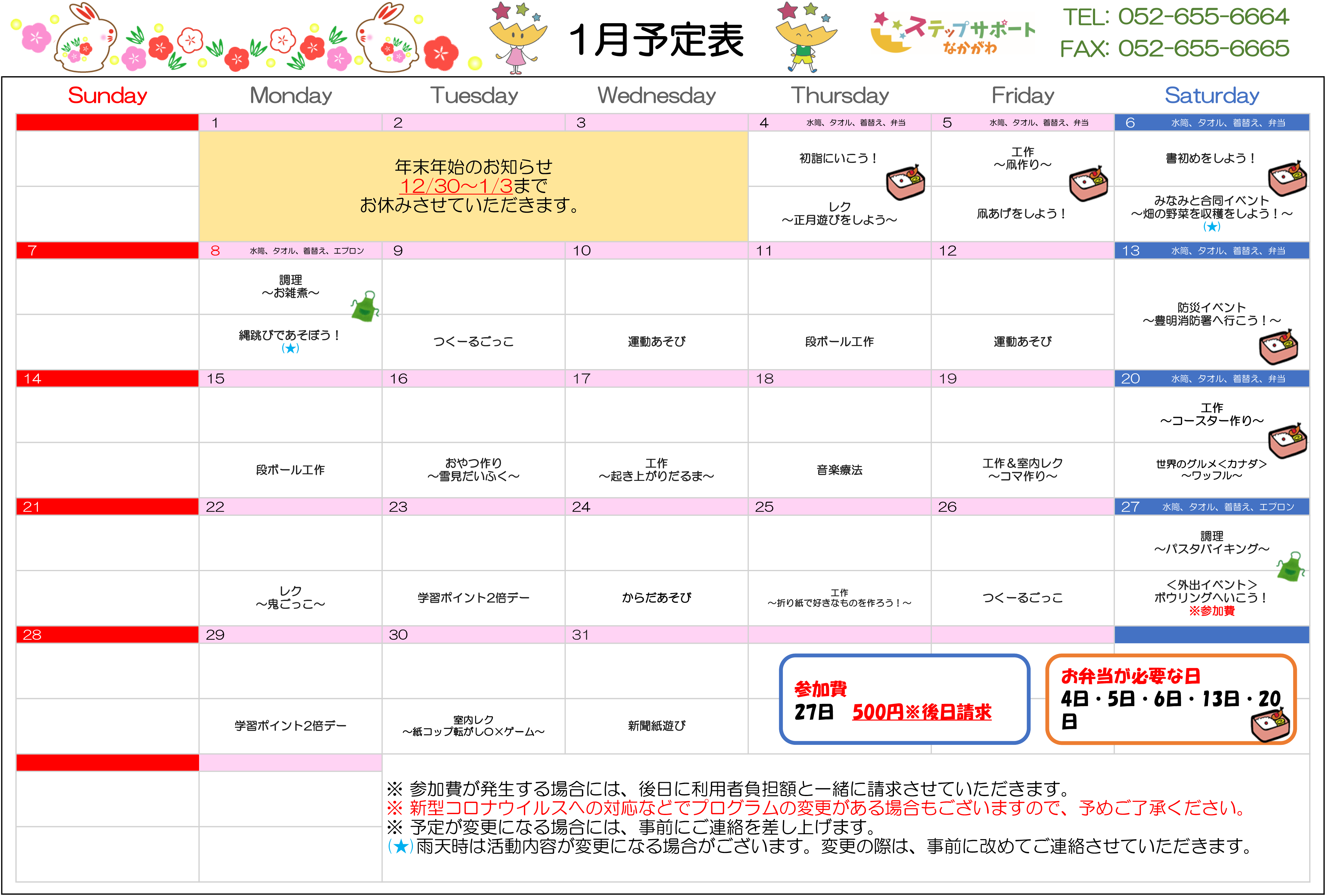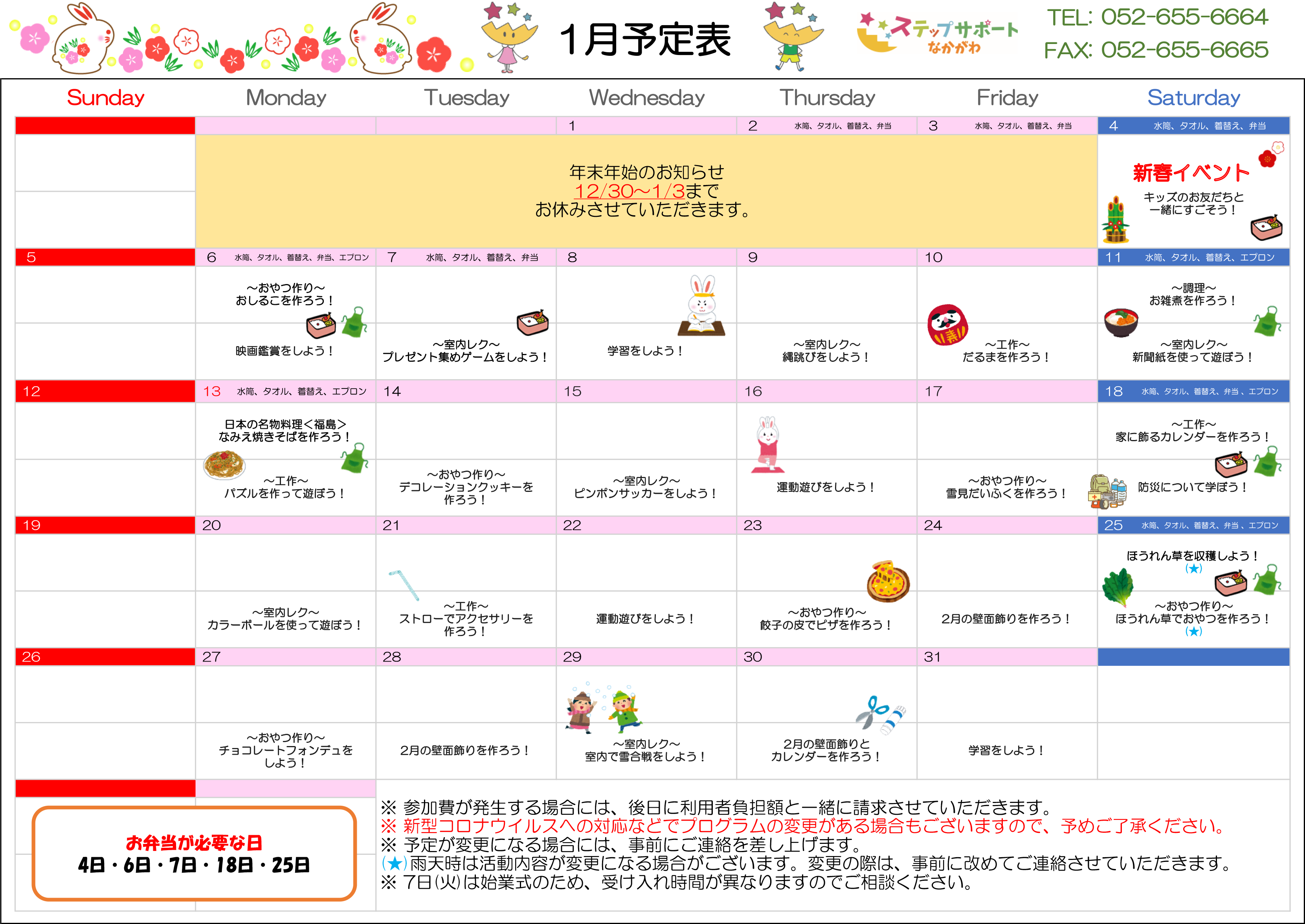 ステップグループの月間行事予定表