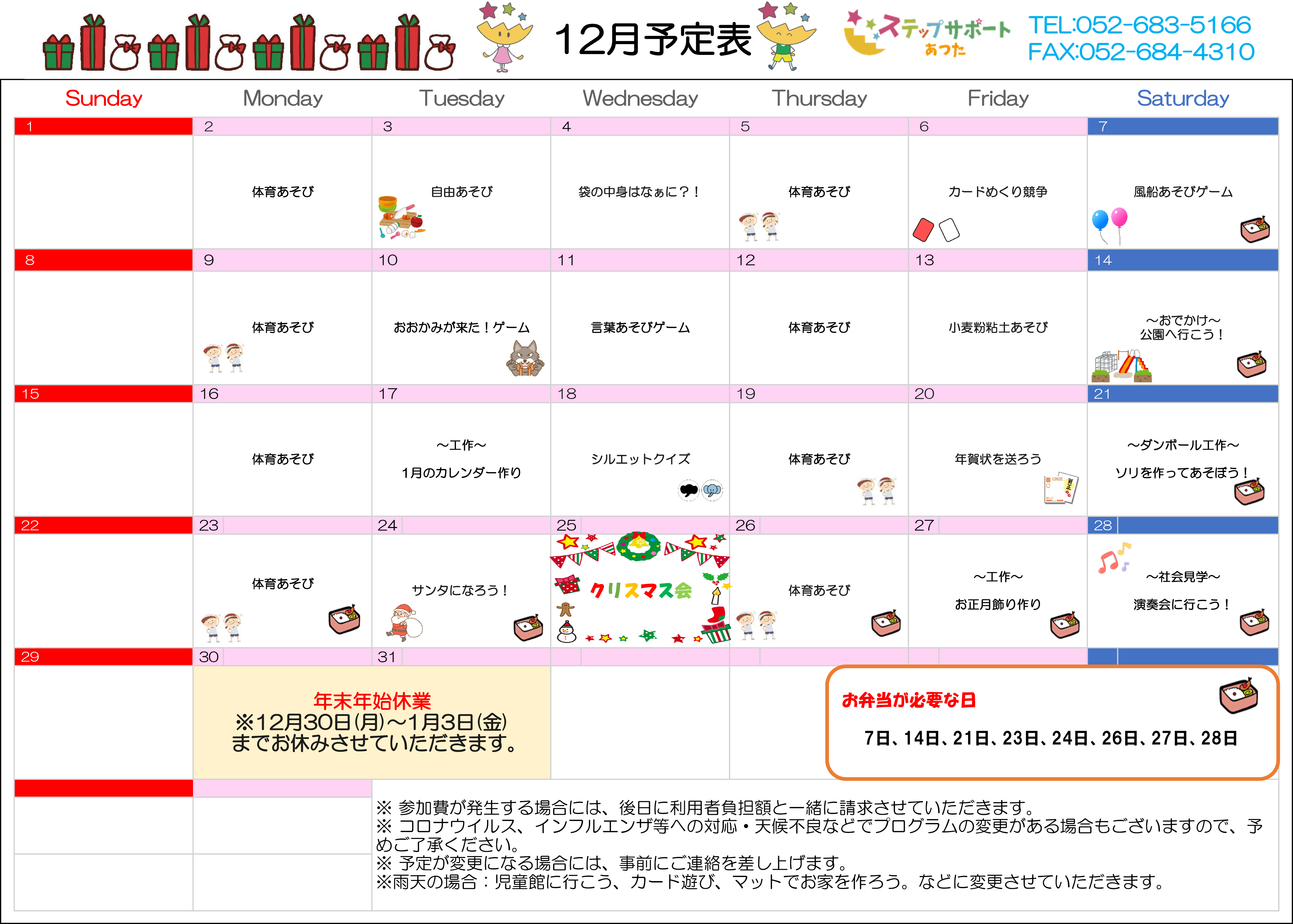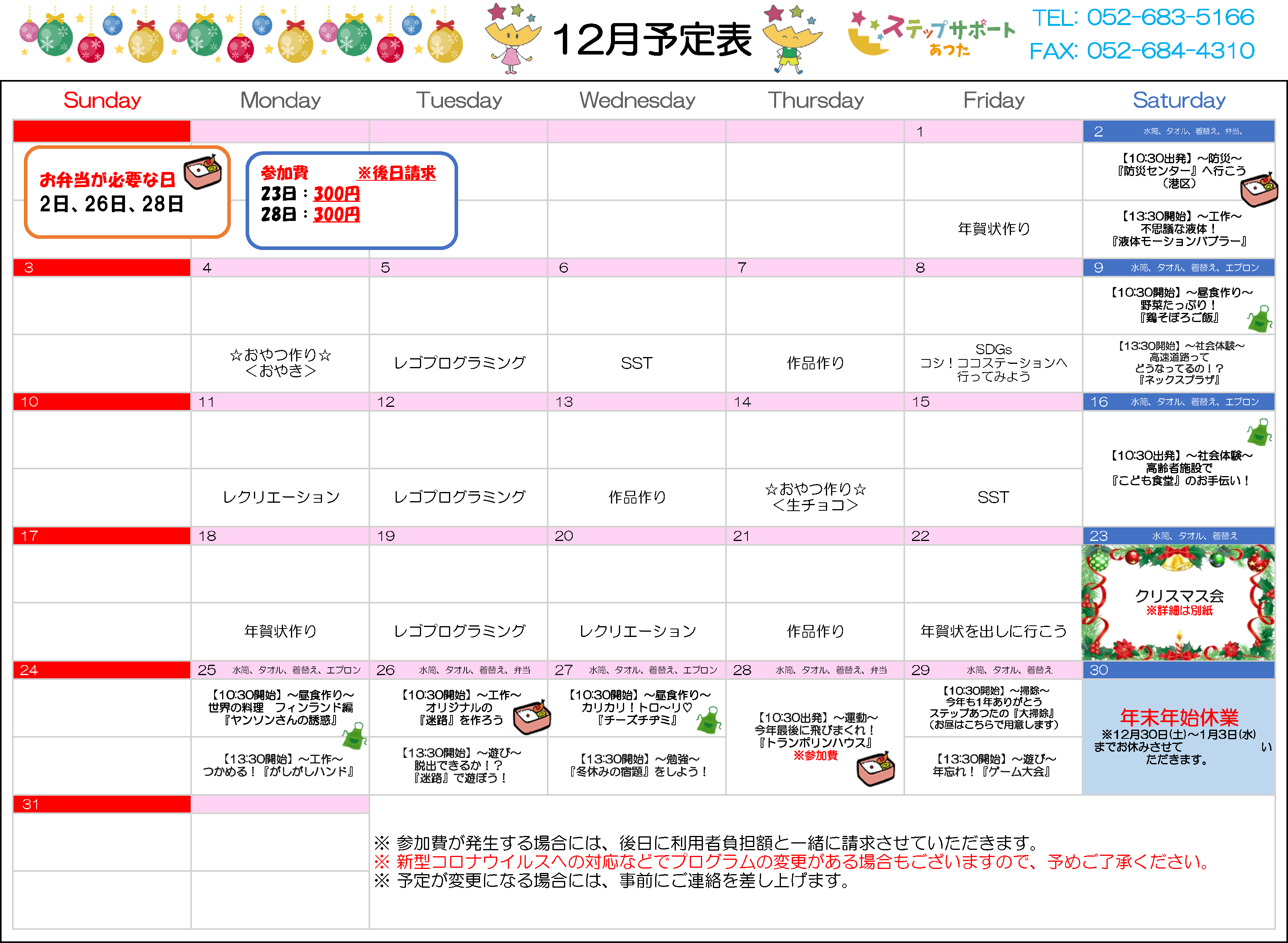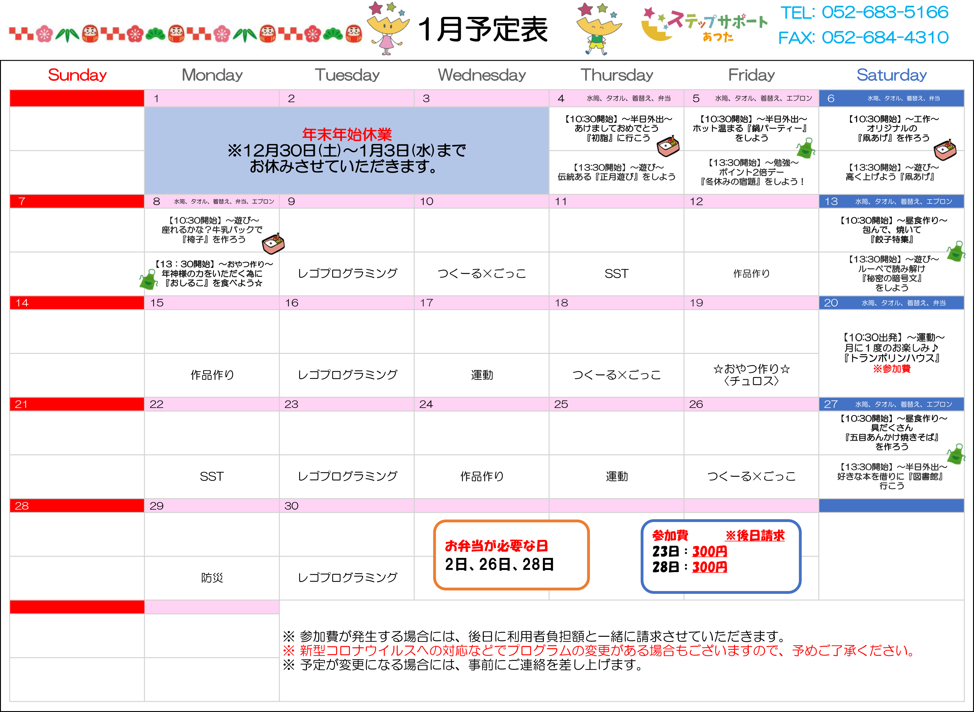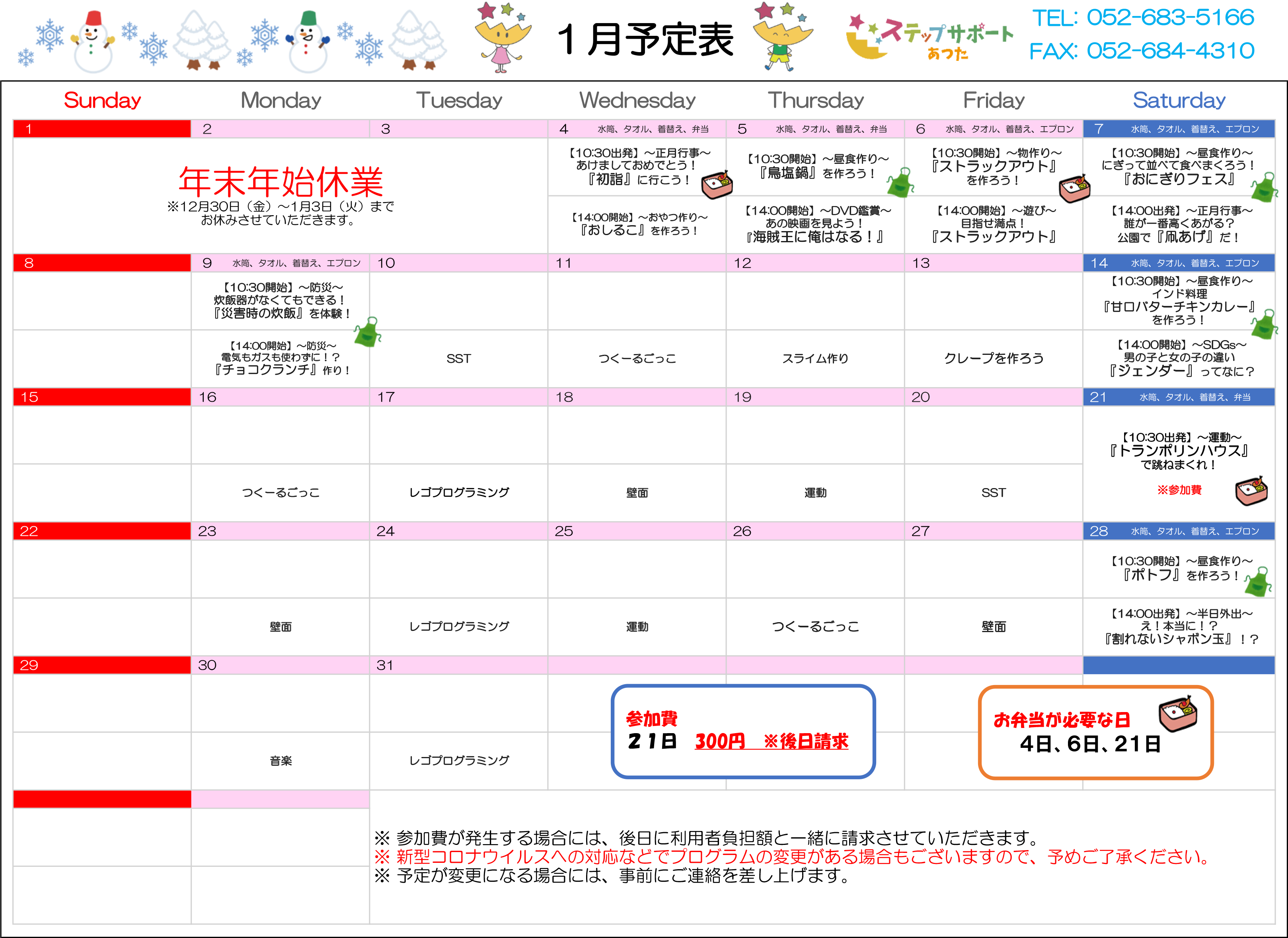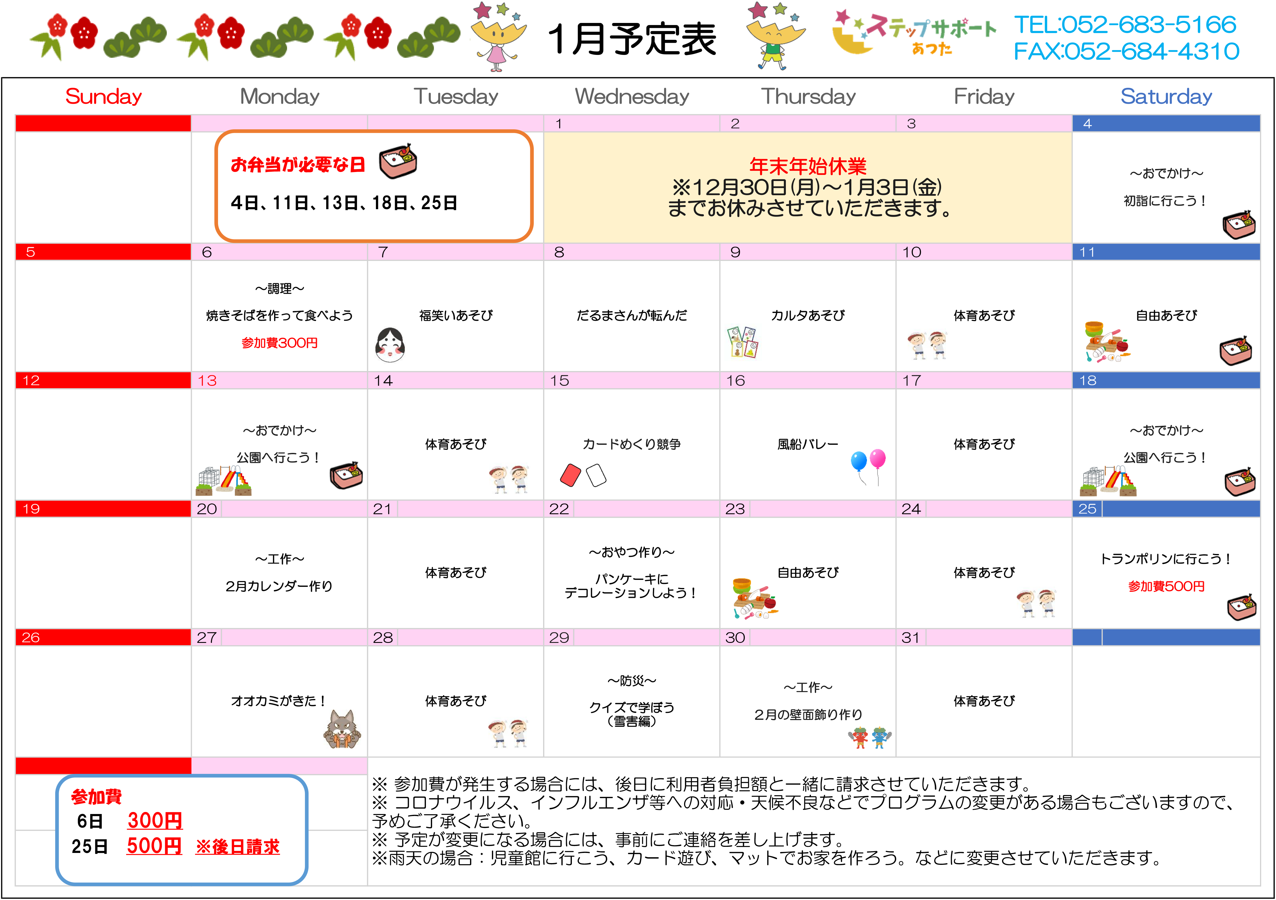 ステップグループの月間行事予定表